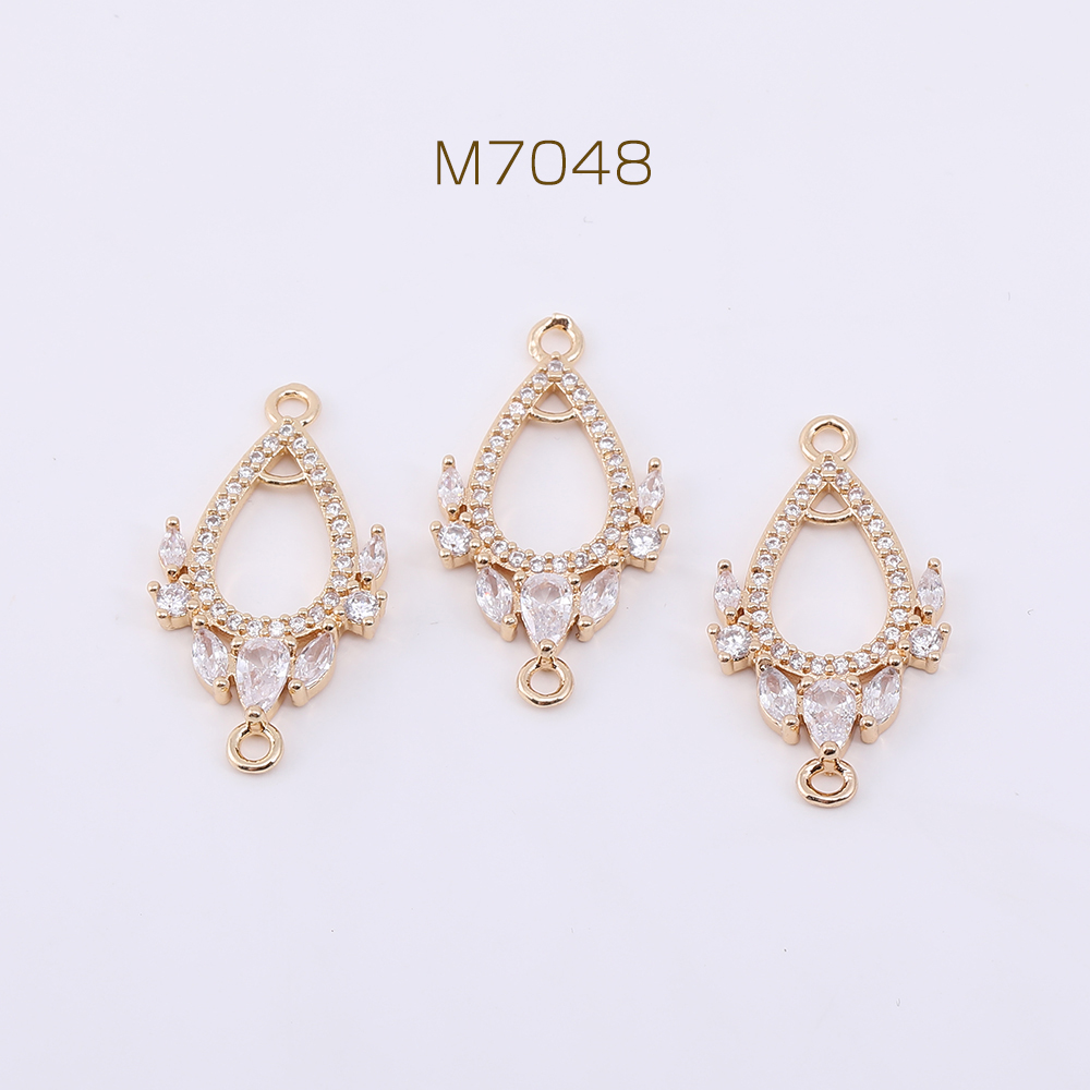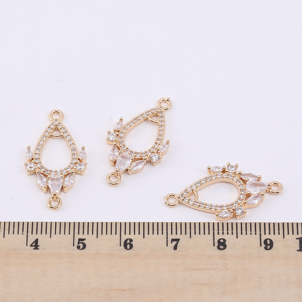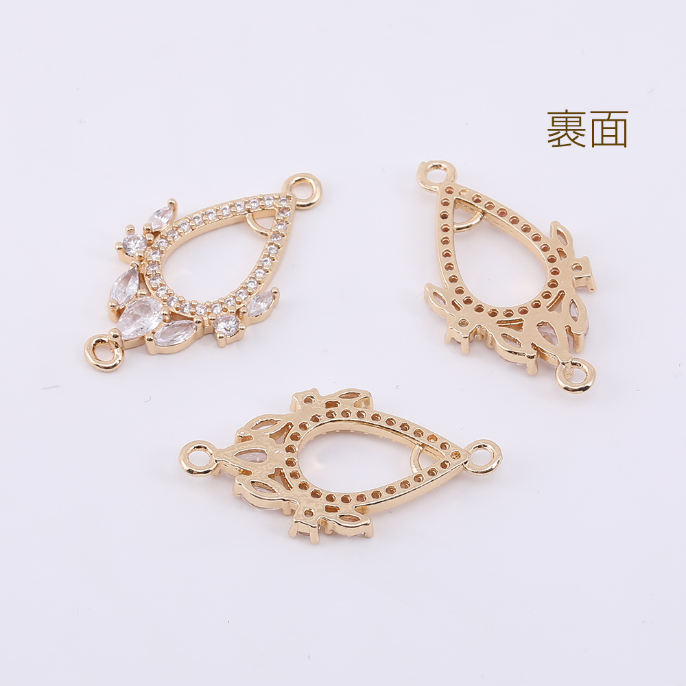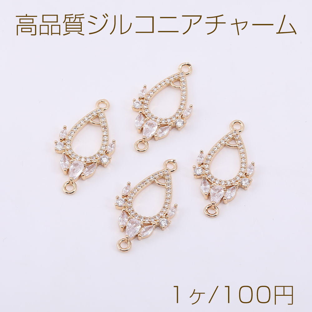 高品質ジルコニアチャーム 雫型 2カン 14×26mm ゴールド/クリスタル【1ヶ】