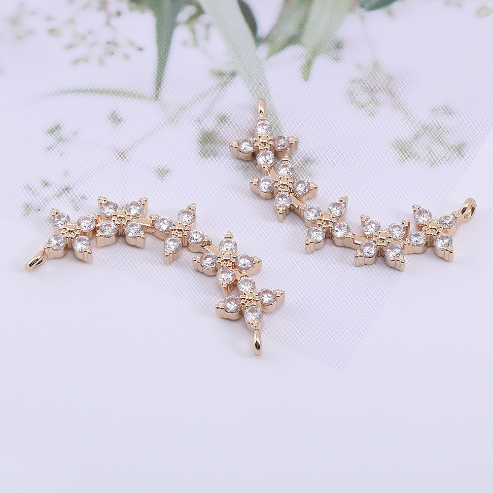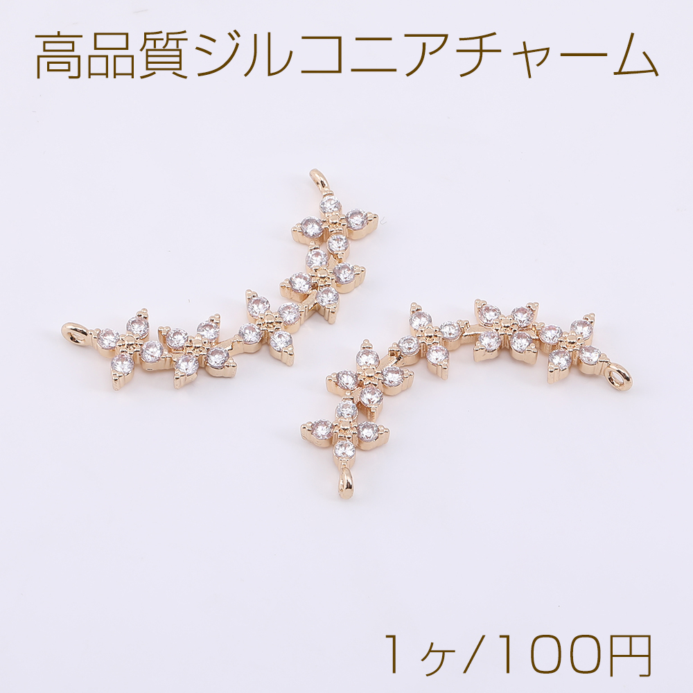 高品質ジルコニアチャーム 5連四弁花 2カン 8×30mm ゴールド/クリスタル【1ヶ】