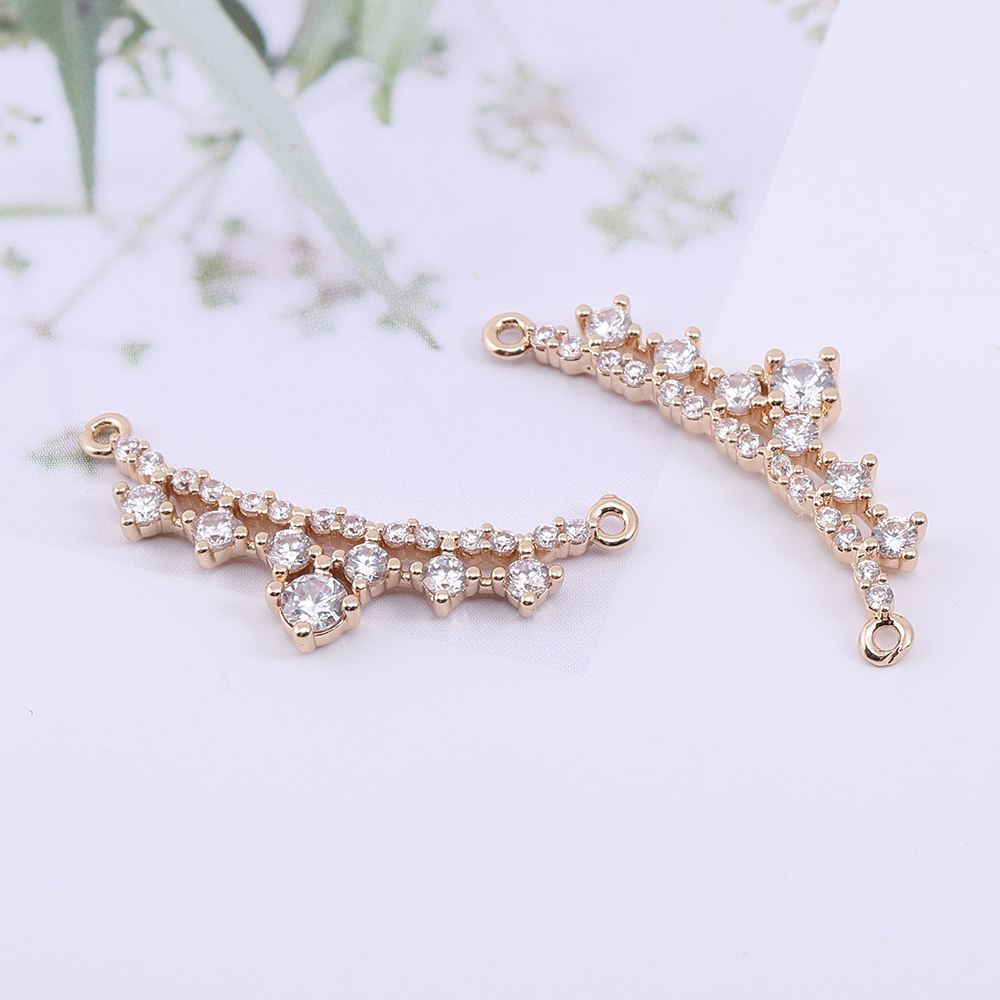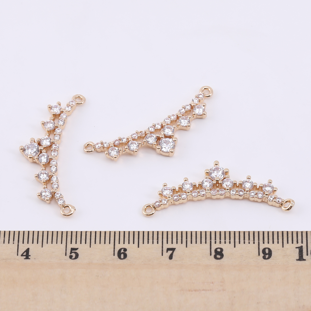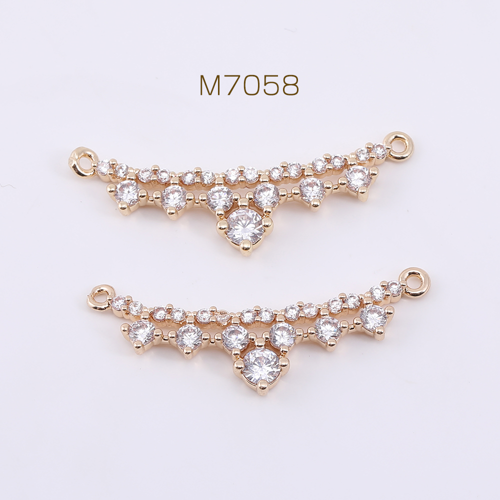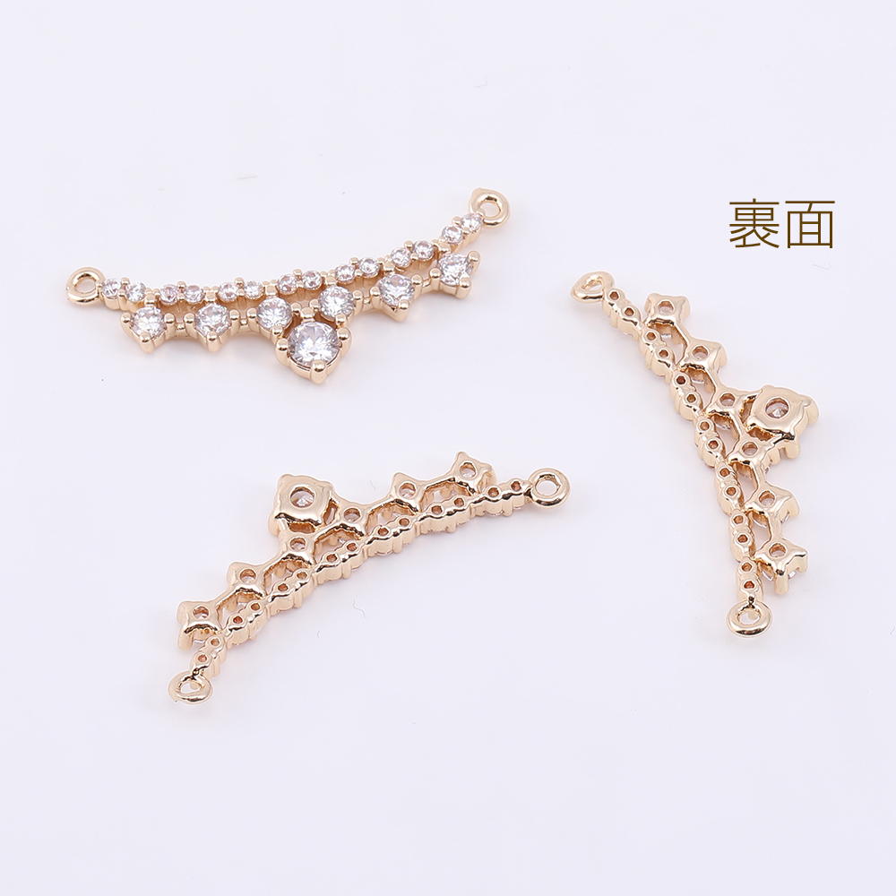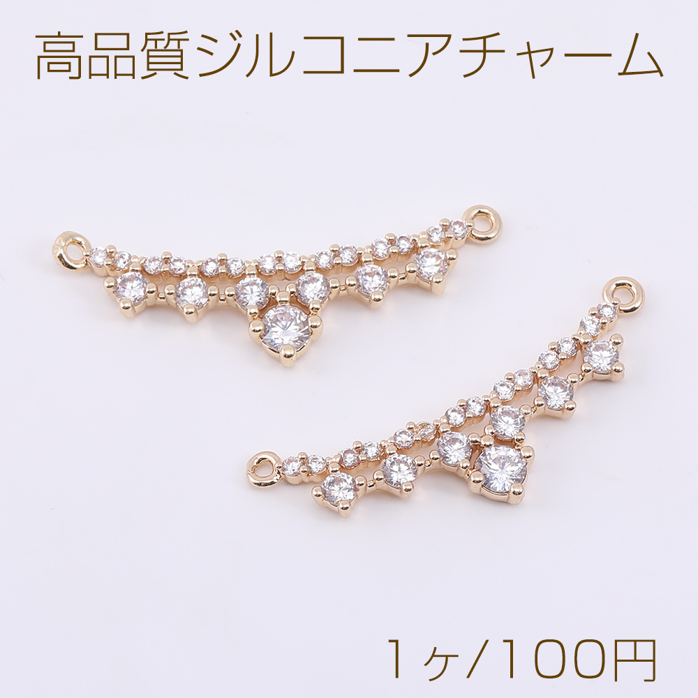 高品質ジルコニアチャーム 王冠 2カン 8.5×31mm ゴールド/クリスタル【1ヶ】