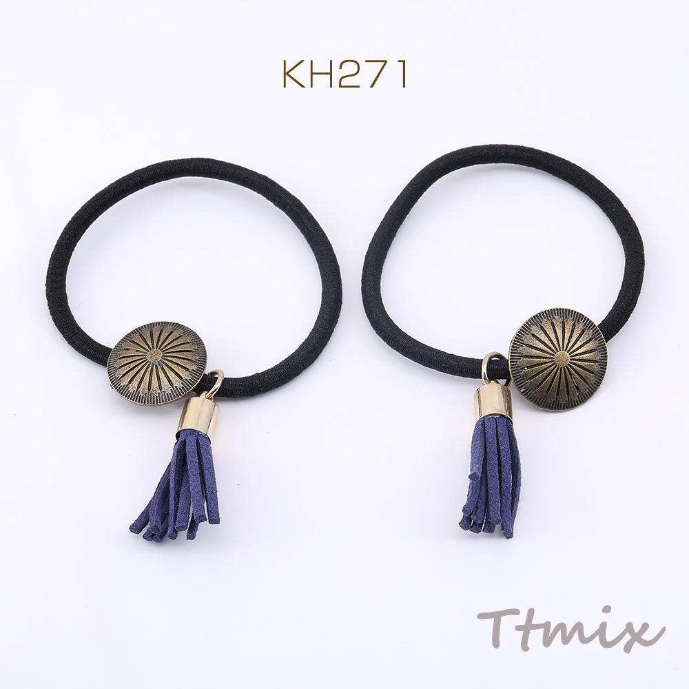 ヘアゴム ヘアアクセサリー 丸型&タッセル付き【6ヶ】