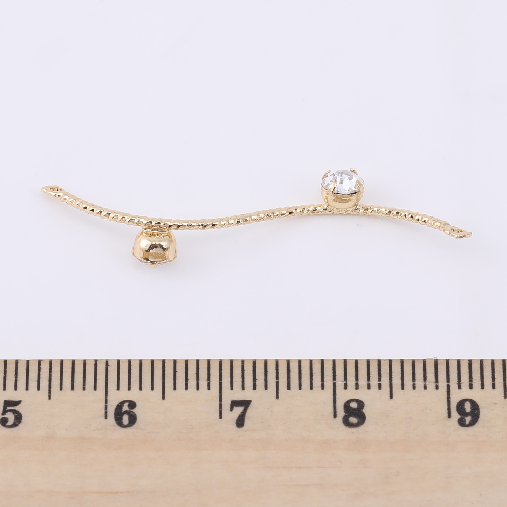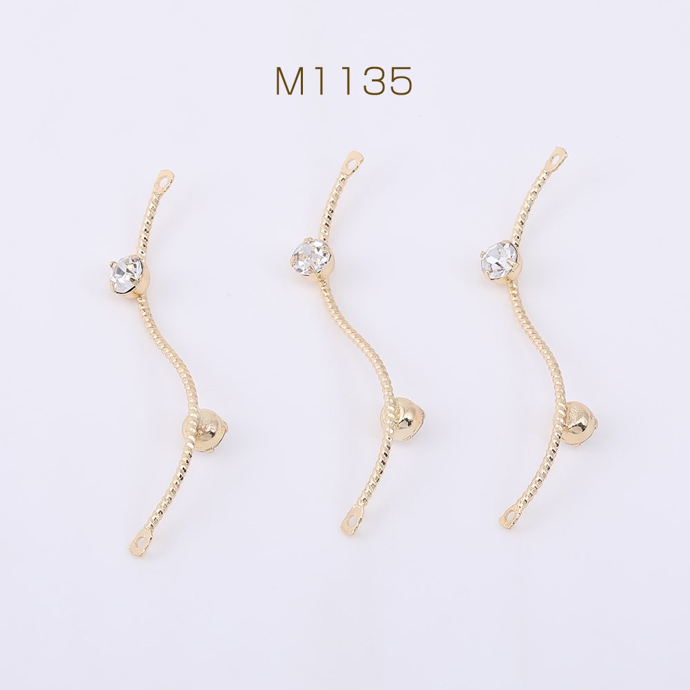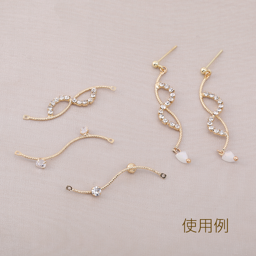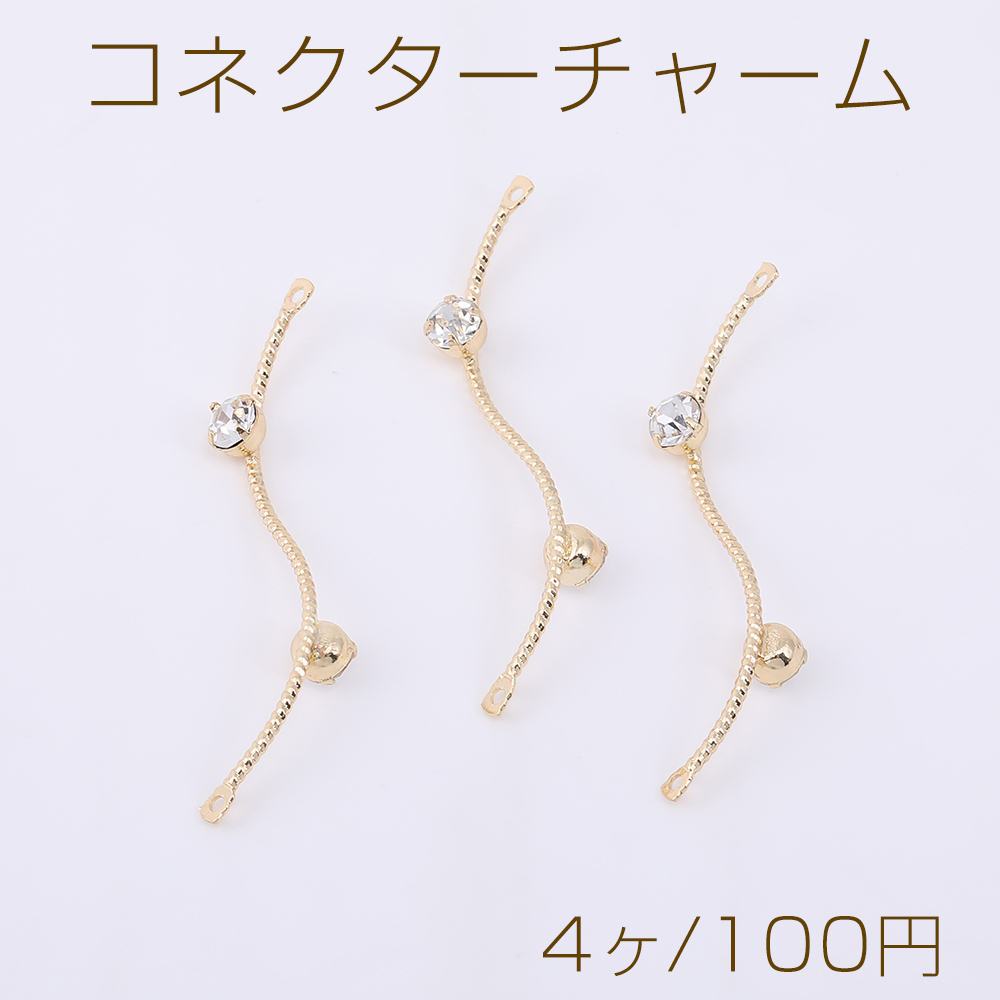 コネクターチャーム ウェーブ スティックC ガラスストーン付き 2カン ゴールド【4ヶ】