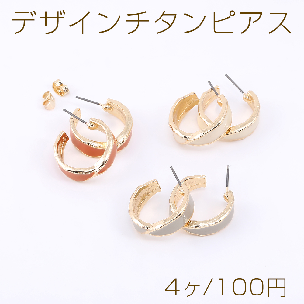 デザインチタンピアス エポ付き フープ 6.5×20mm ゴールド【4ヶ】
