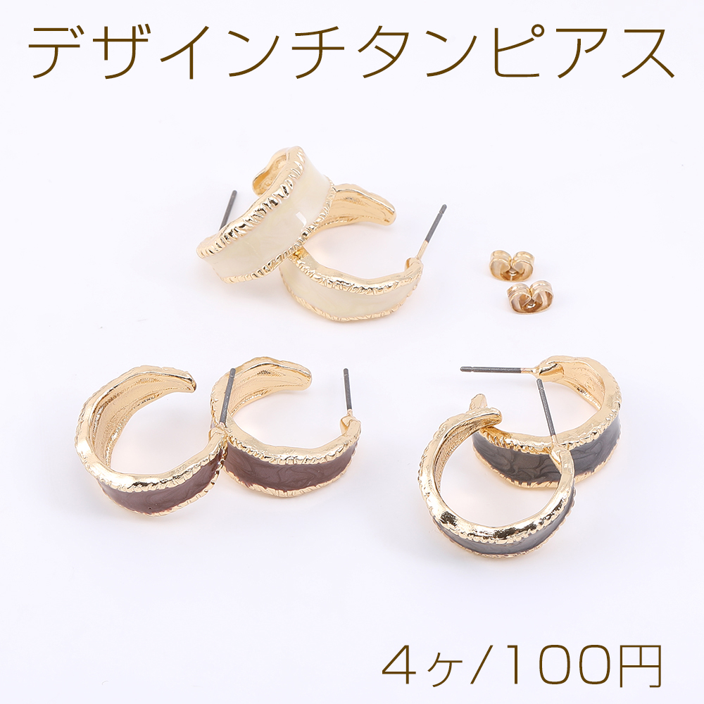 デザインチタンピアス エポ付き フープ 9×21mm ゴールド【4ヶ】