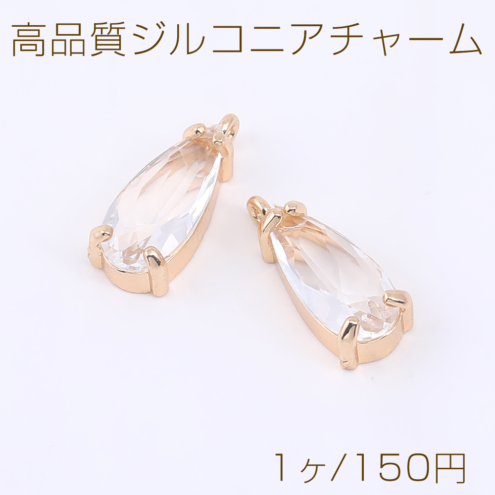 高品質ジルコニアチャーム 雫型 カン付き 7×18mm ゴールド【1ヶ】