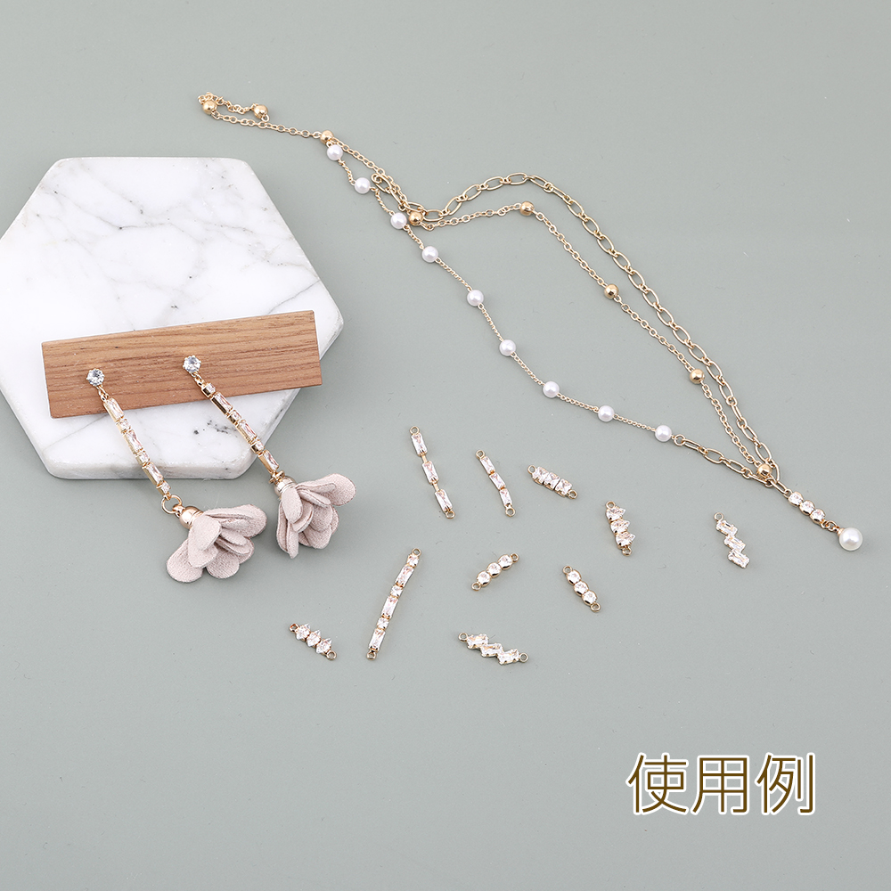 ガラスストーンコネクターチャーム スティックG 2カン 2.7×32mm ゴールド【2ヶ】
