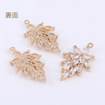 高品質ジルコニアチャーム リーフ 1カン 14.5×24mm ゴールド/クリスタル【1ヶ】