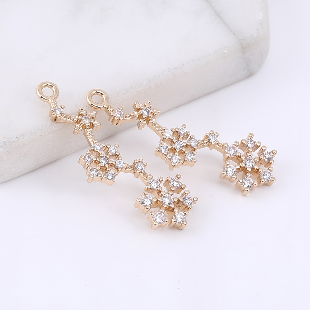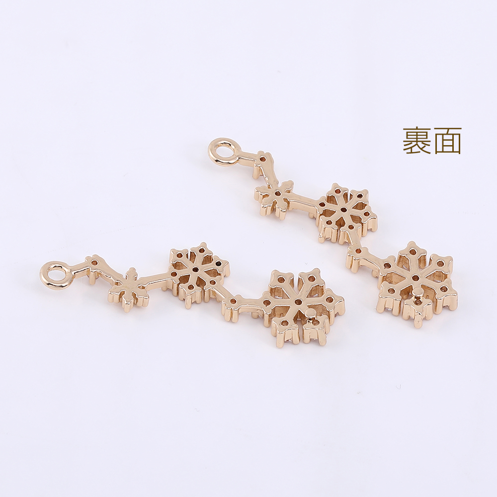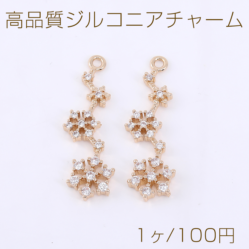 高品質ジルコニアチャーム スノーフレーク 1カン 10×34mm ゴールド/クリスタル【1ヶ】