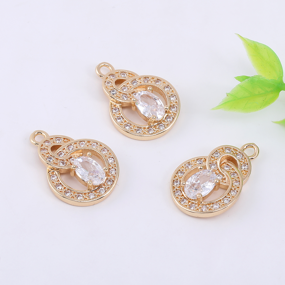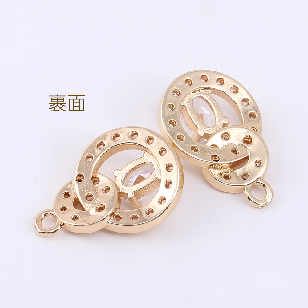 高品質ジルコニアチャーム 2連丸型 1カン 12×17.5mm ゴールド/クリスタル【1ヶ】