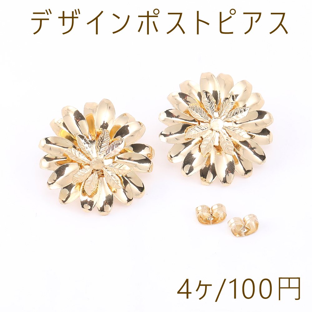 デザインポストピアス 菊 25×25mm ゴールド(4ヶ)