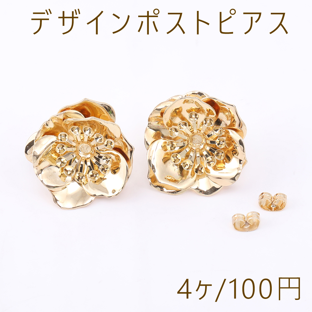 デザインポストピアス フラワー 25×28mm ゴールド(4ヶ)
