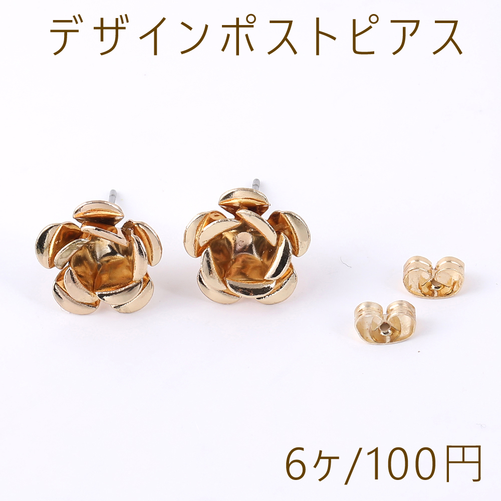 デザインポストピアス バラ 14×14mm ゴールド(6ヶ)