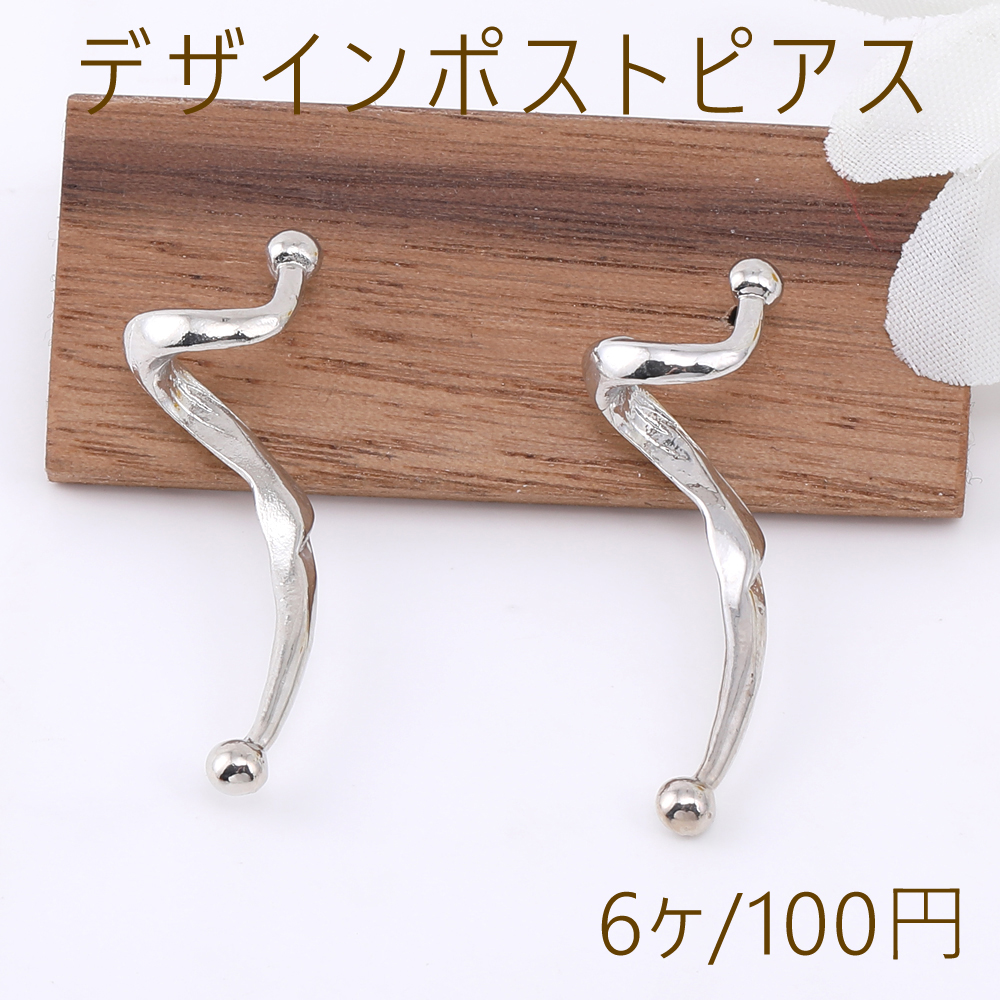 デザインポストピアス ひねりスティック 11×33mm ロジウム(6ヶ)