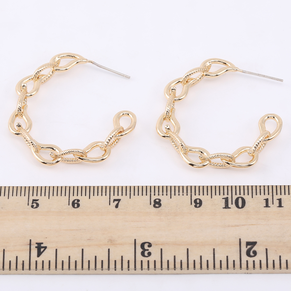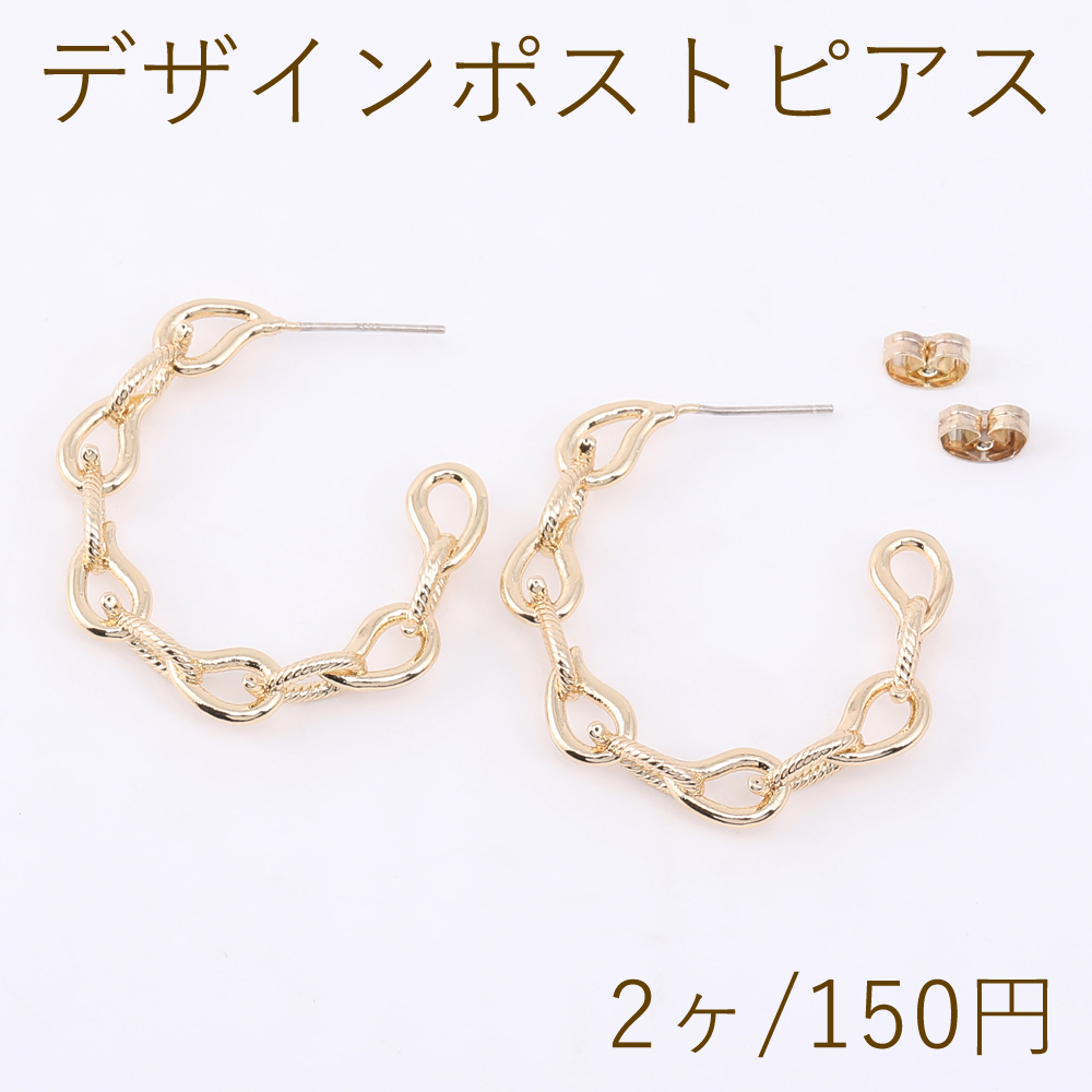 デザインポストピアス チェーンフープピアス 32×36mm ゴールド(2ヶ)