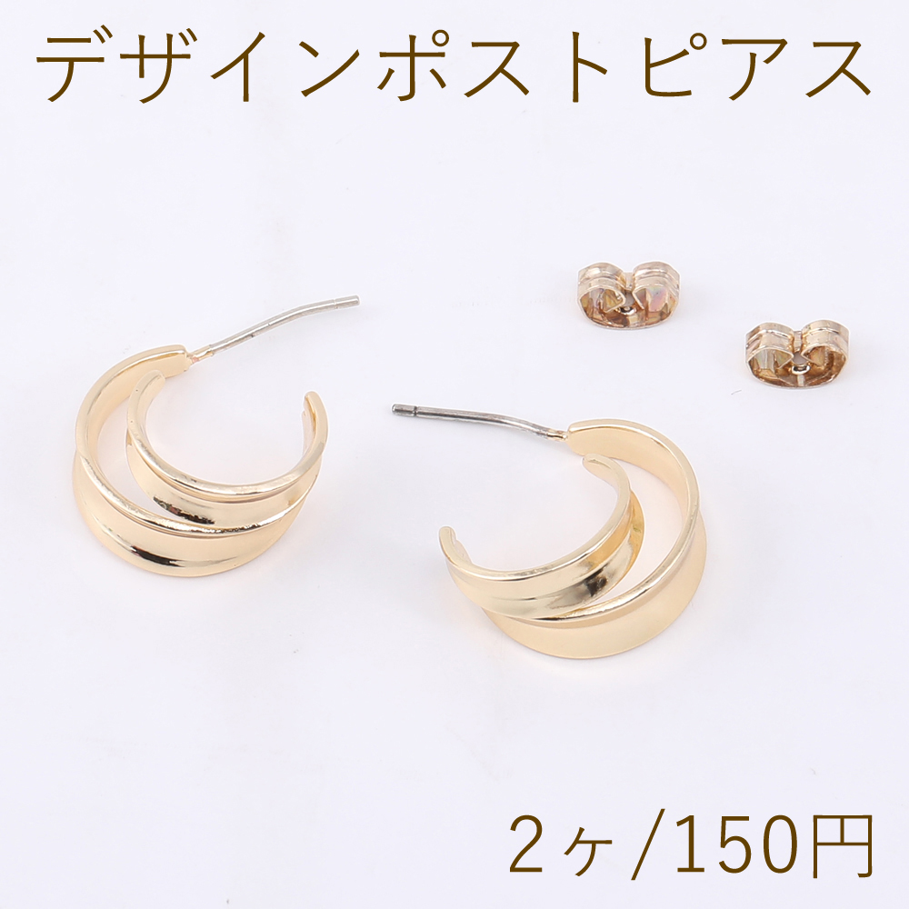 デザインポストピアス 2連フープ 10×17mm ゴールド(2ヶ)