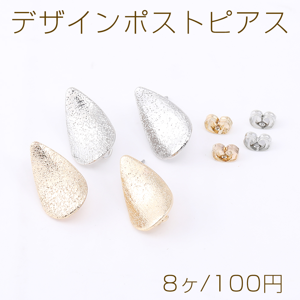 デザインポストピアス フロスト加工 雫型 カン付き 12×20mm(8ヶ)