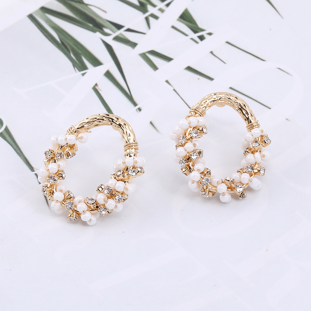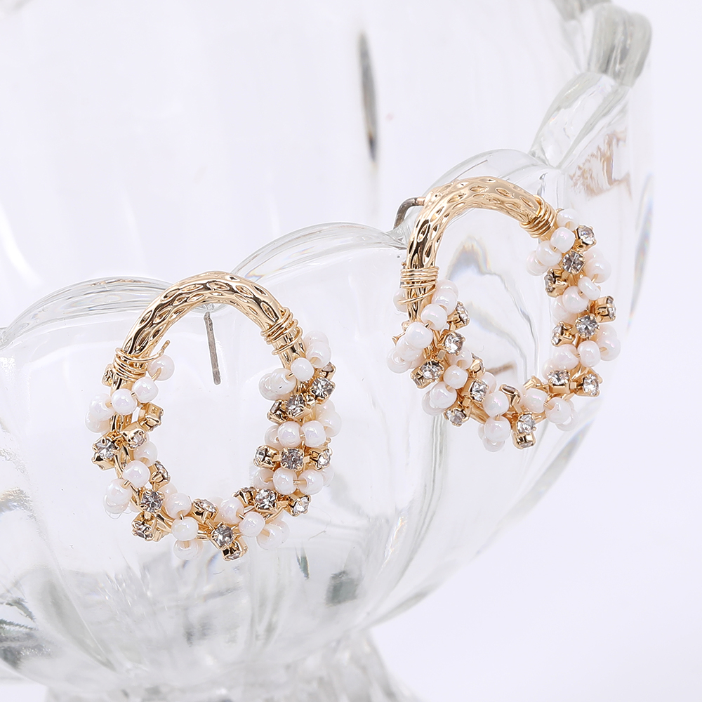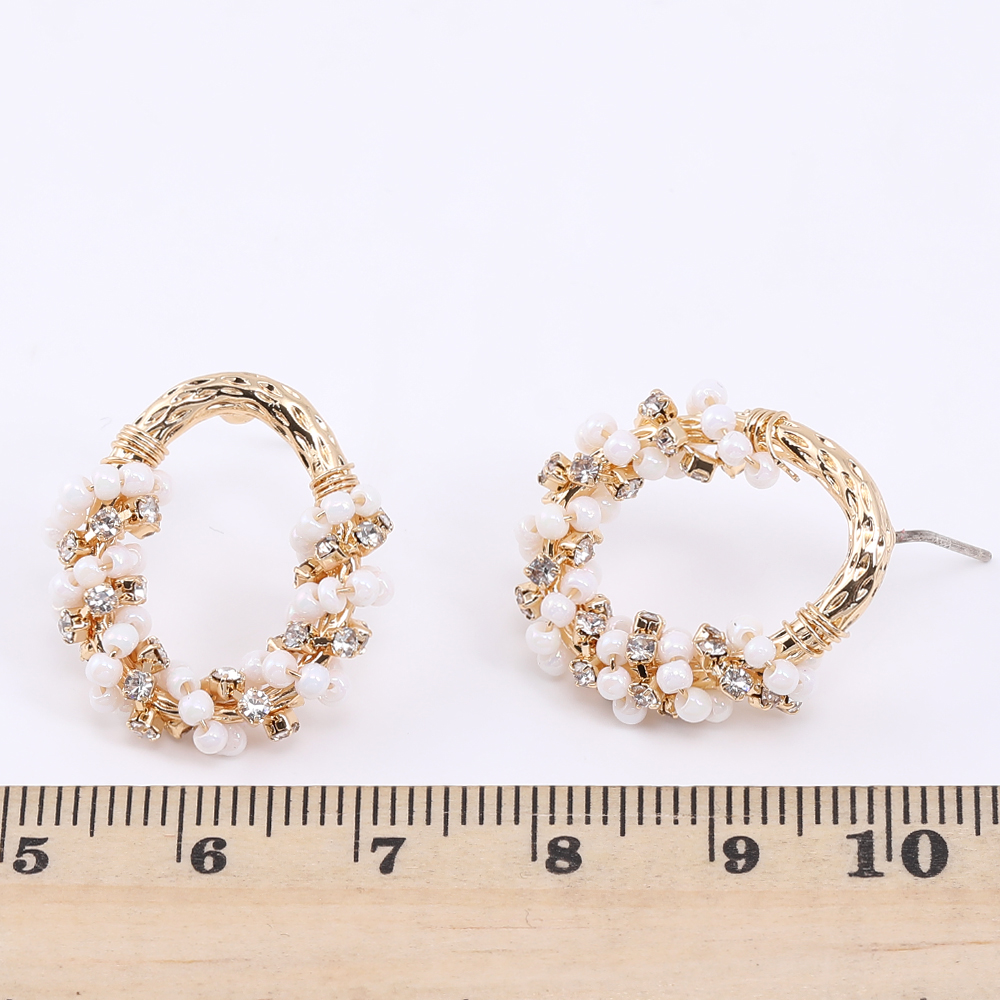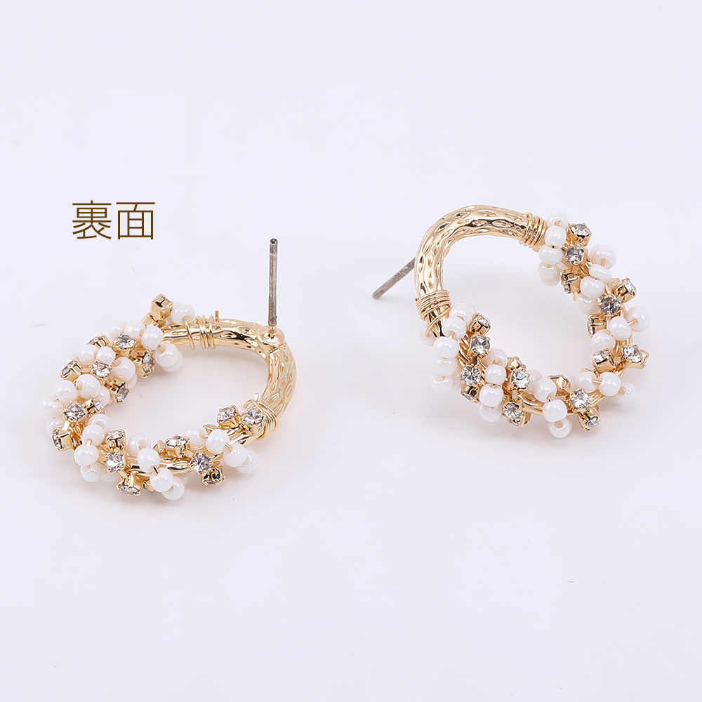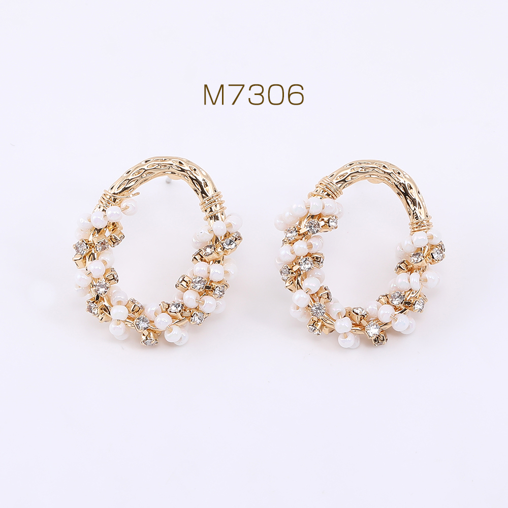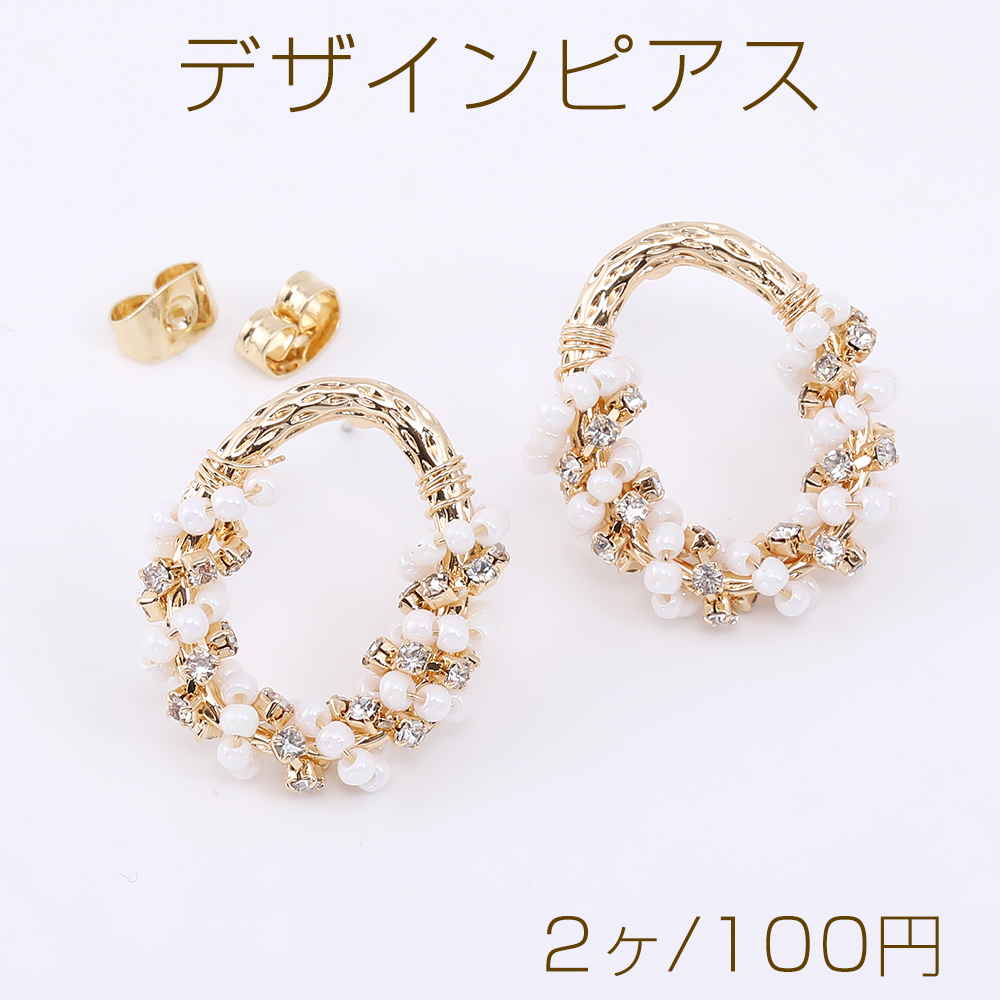 デザインピアス オーバル ビーズ&石付き 20×23mm ゴールド(2ヶ)