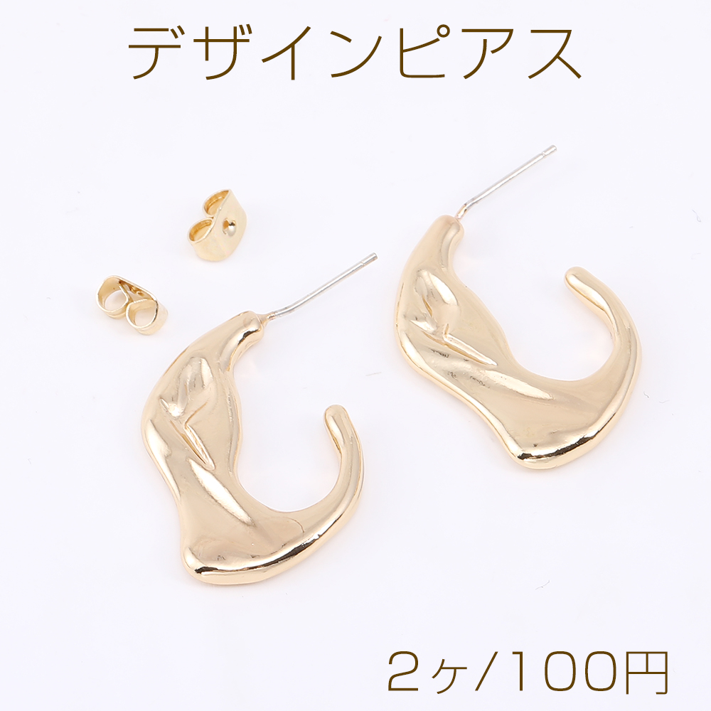 デザインピアス 不規則フープ 18×28mm ゴールド(2ヶ)