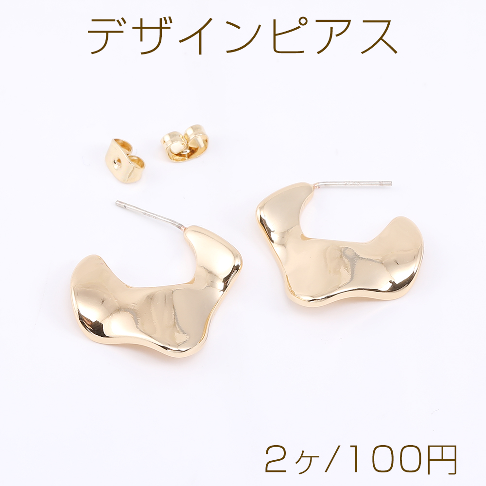 デザインピアス 不規則型 11×23.5mm ゴールド(2ヶ)