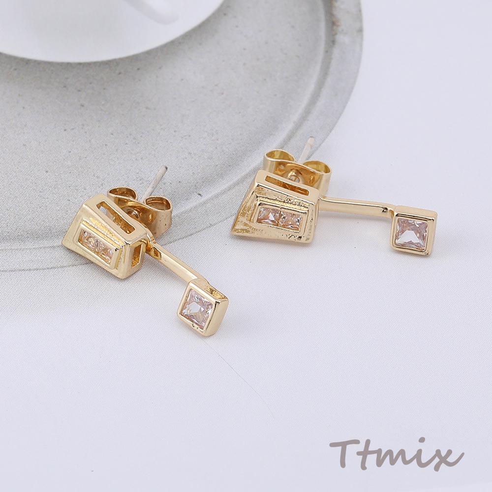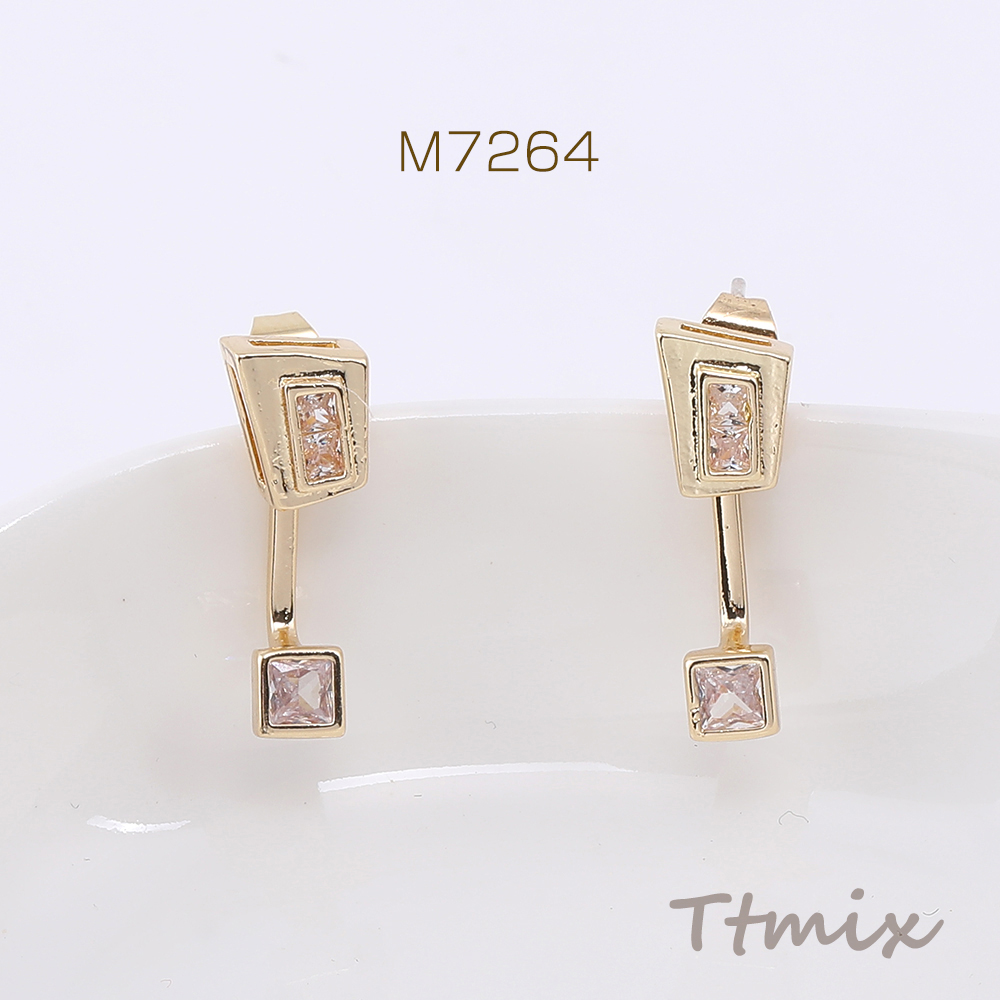 デザインピアス 変形長方形 ジルコニア付き 6×18mm ゴールド(1ペア)