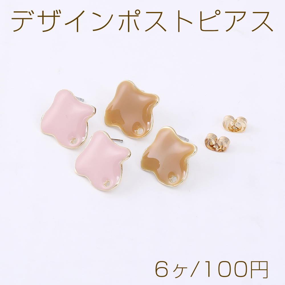 デザインポストピアス クローバー エポ付き 1穴 17×17mm ゴールド(6ヶ)