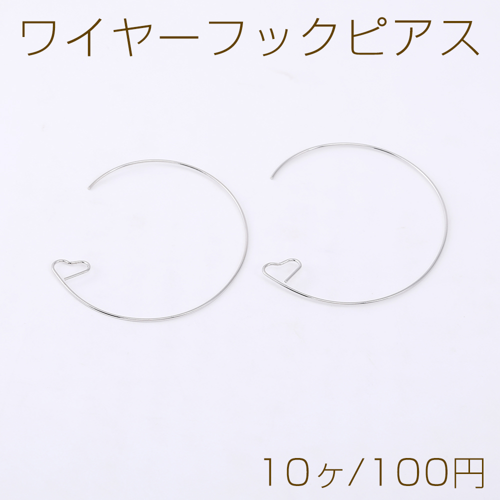 ワイヤーフックピアス ハート 43mm ロジウム(10ヶ)