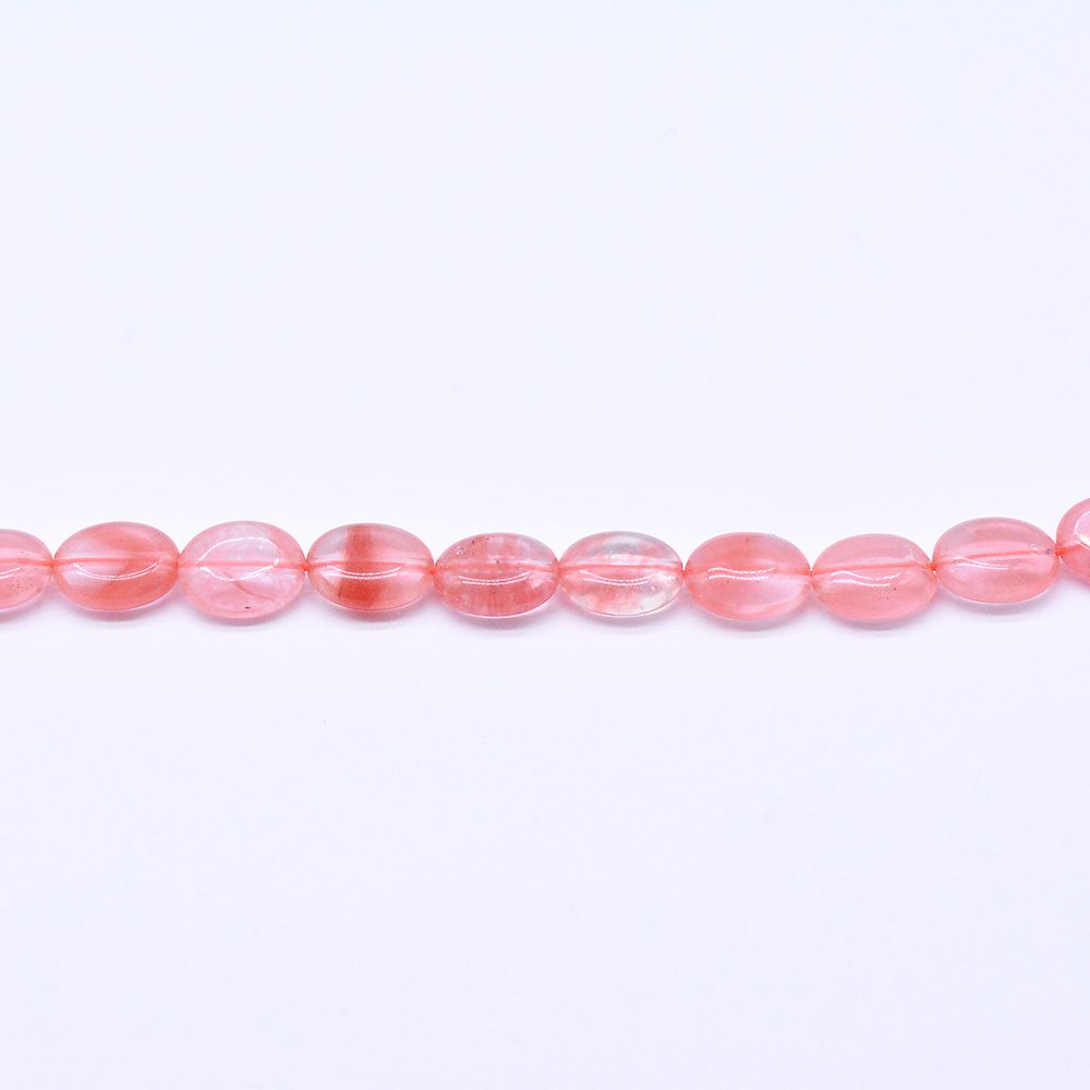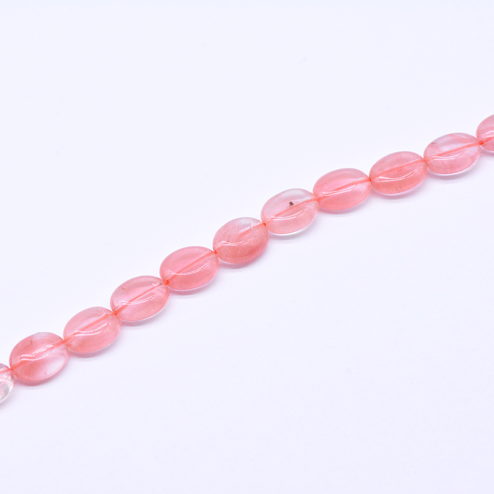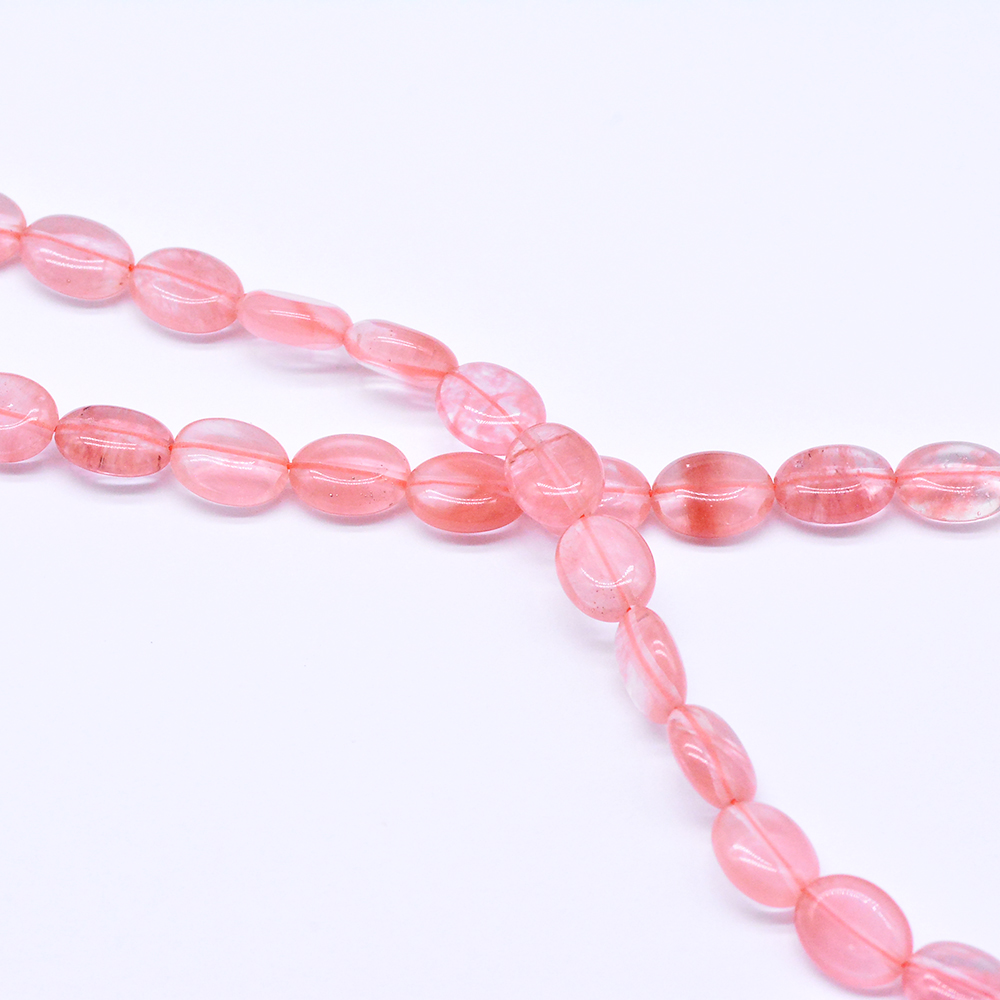 天然石ビーズ 合成チェリークォーツ オーバル型 1連(約39ヶ)
