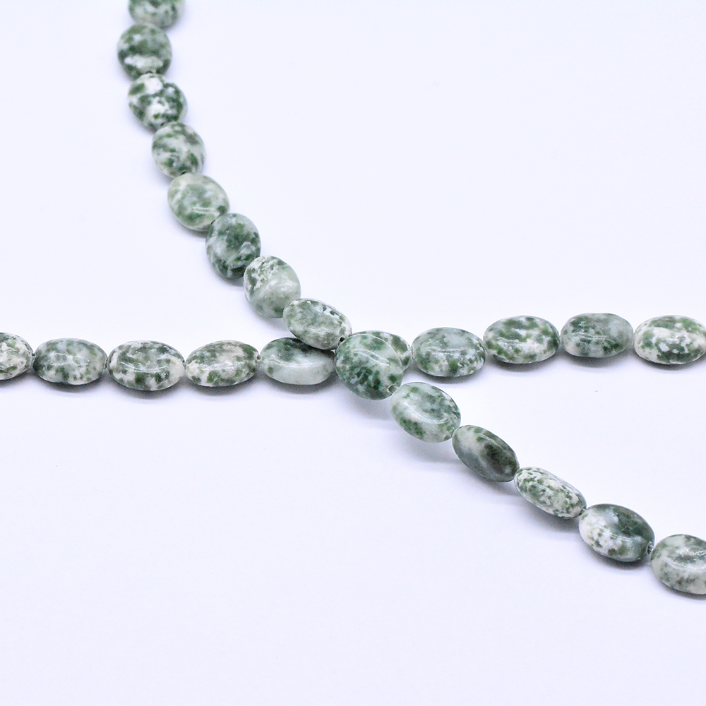 天然石ビーズ グリーンジャスパー オーバル型 1連(約41ヶ)