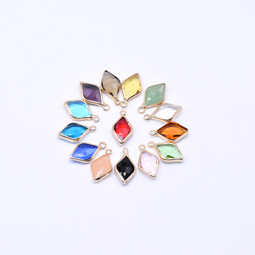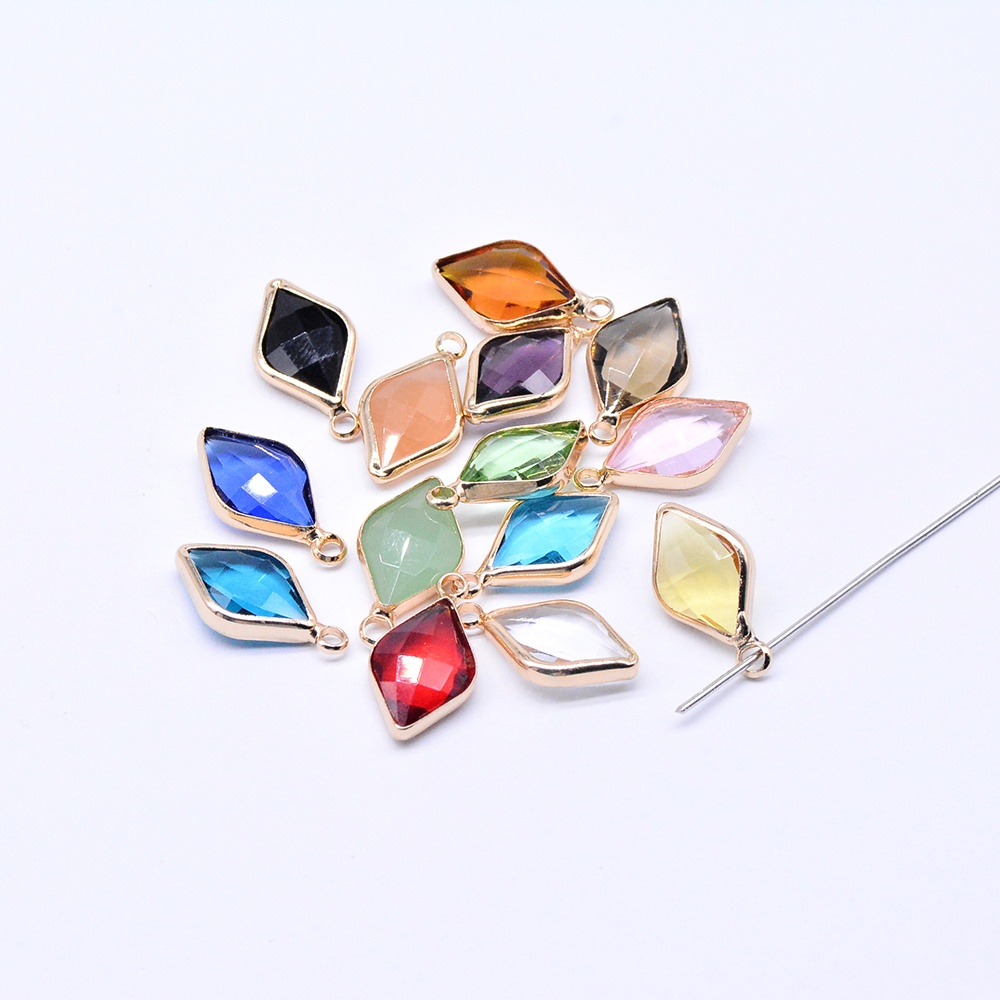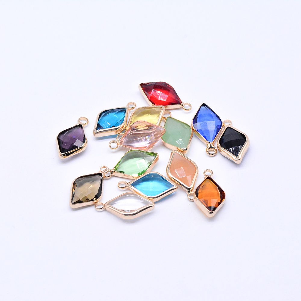 フレームガラスチャーム 菱形カット カン付き ゴールド 10×18mm【10ヶ】