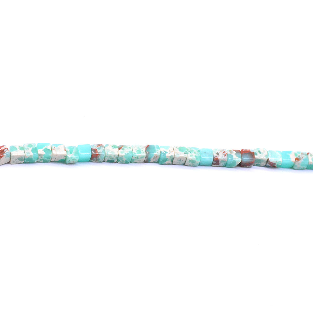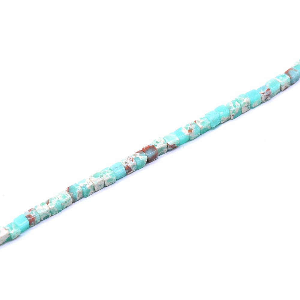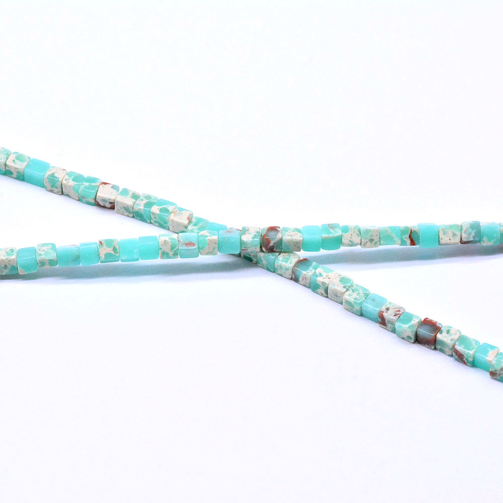 天然石ビーズ インペリアルジャスパーブルー キューブ 1連(約114ヶ)