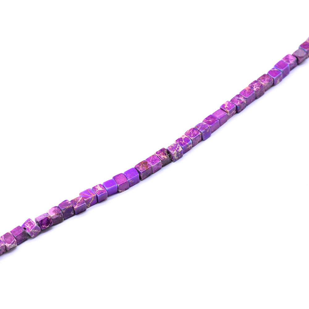 天然石ビーズ インペリアルジャスパーディープパープル キューブ 1連(約120ヶ)