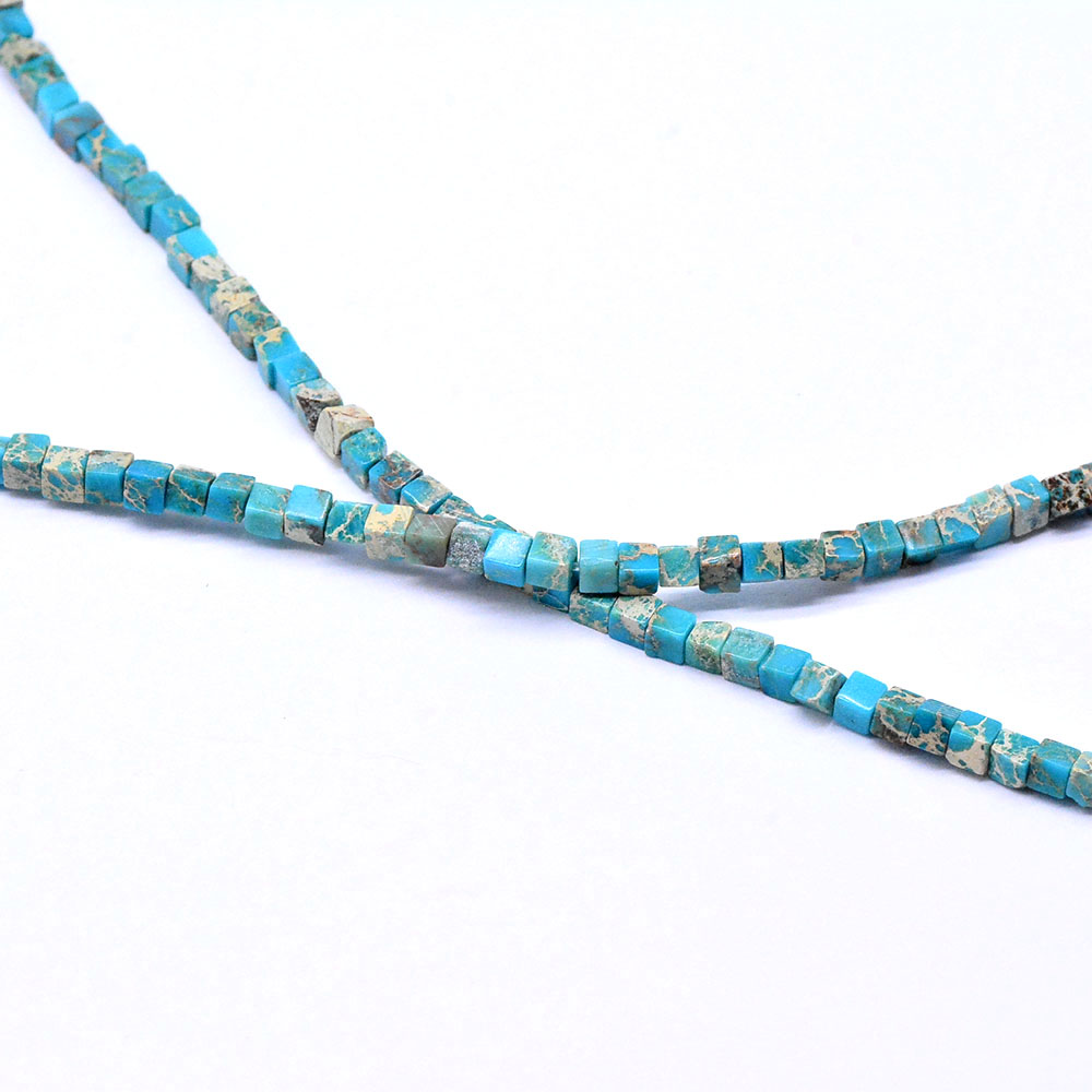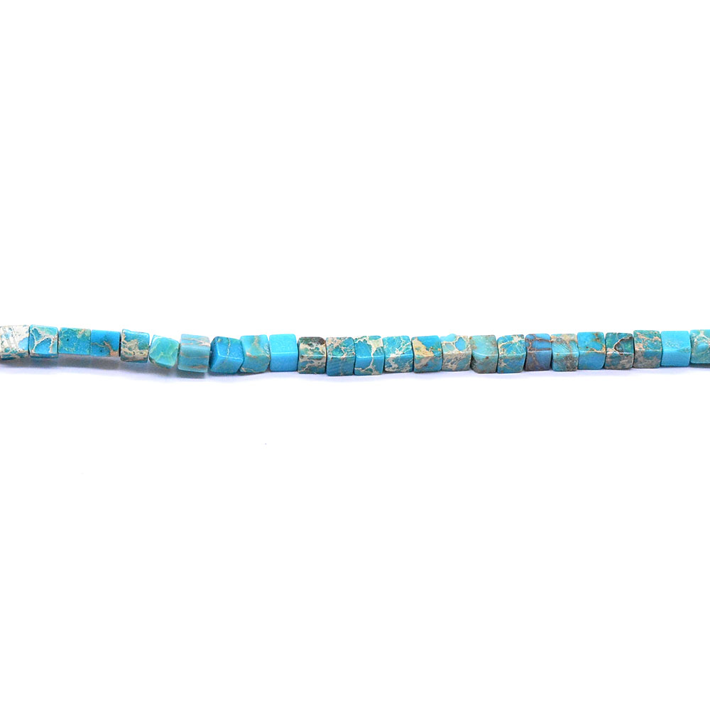 天然石ビーズ インペリアルジャスパーターコイズ キューブ 1連(約118ヶ)
