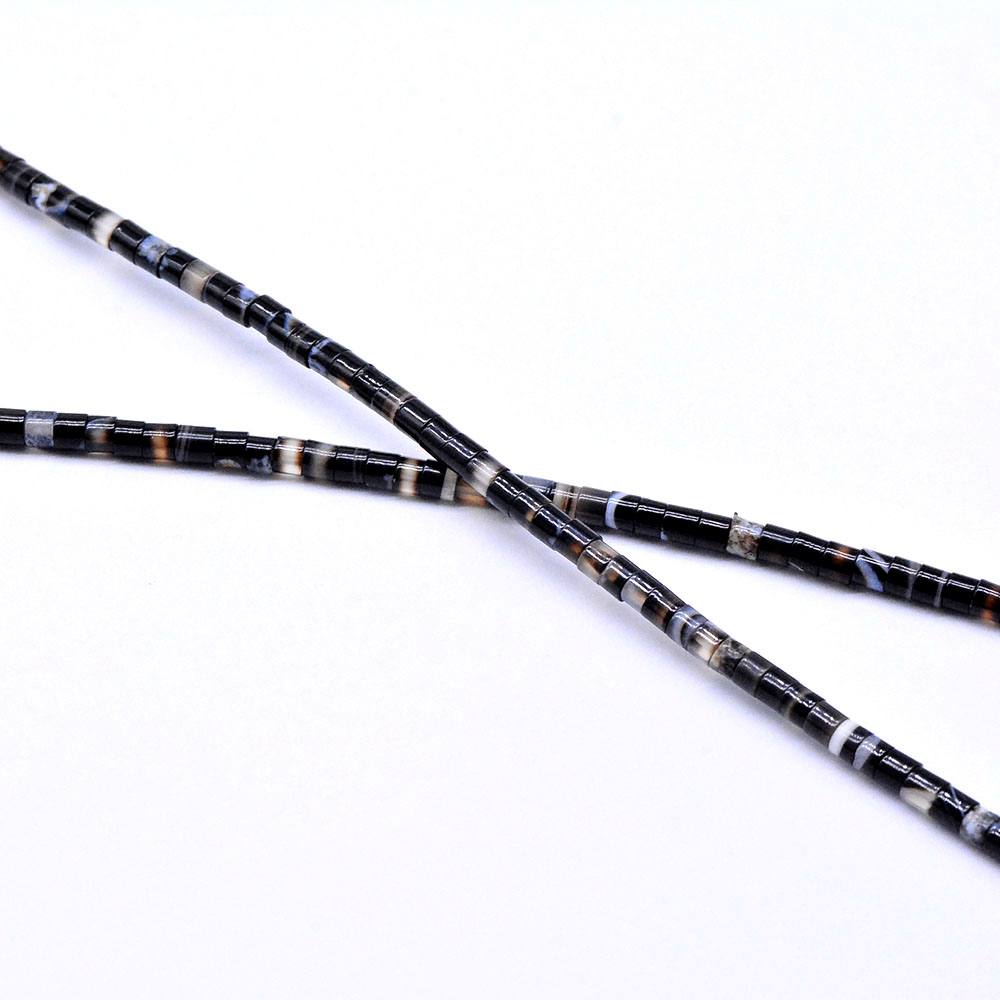 天然石ビーズ ブラックアゲート 円柱型 1連(約140ヶ)