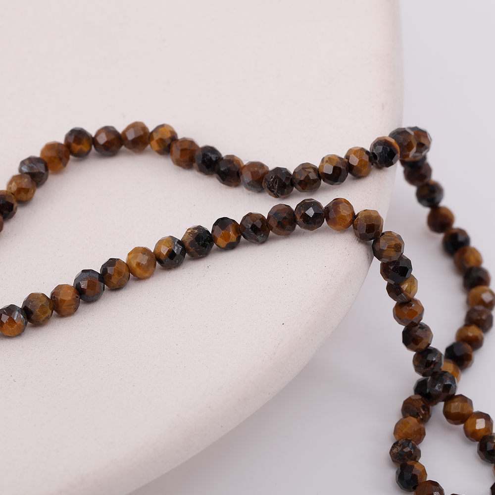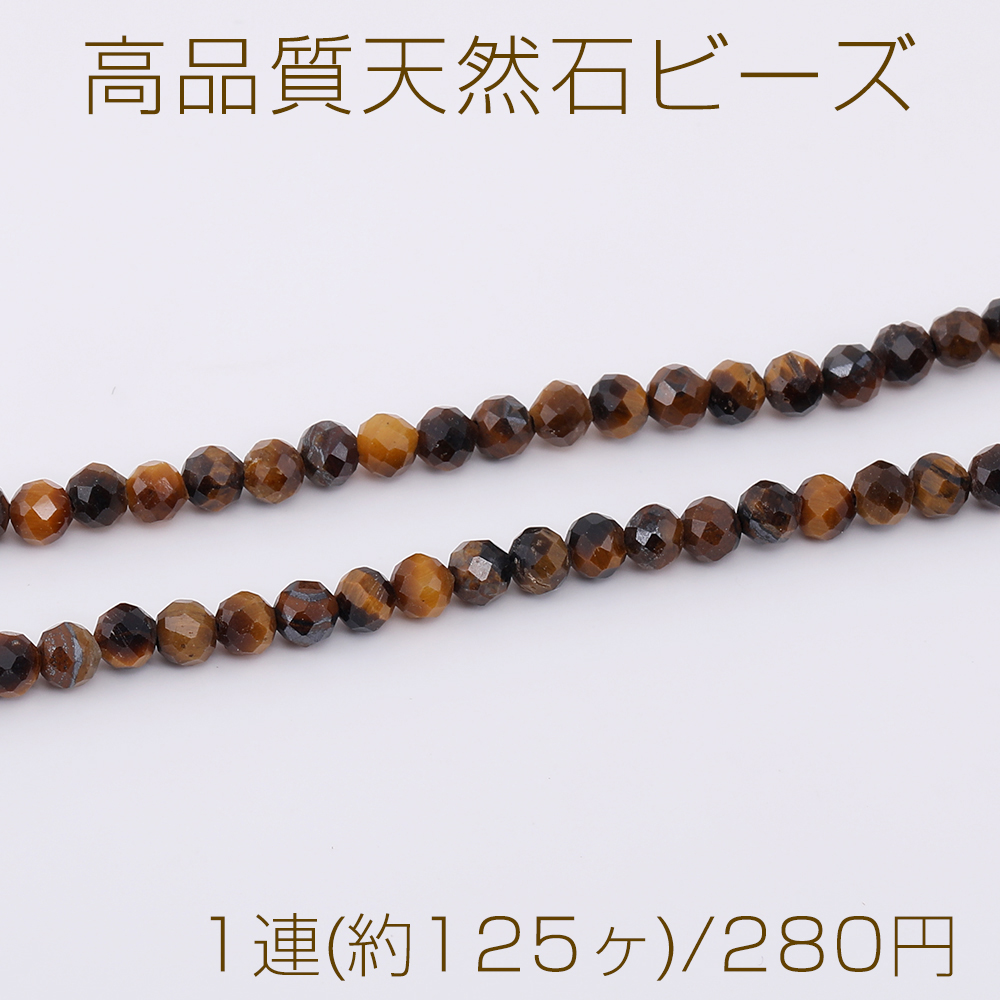 高品質天然石ビーズ タイガアイ ラウンドカット 3mm 1連(約125ヶ)