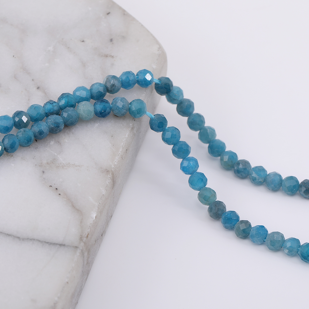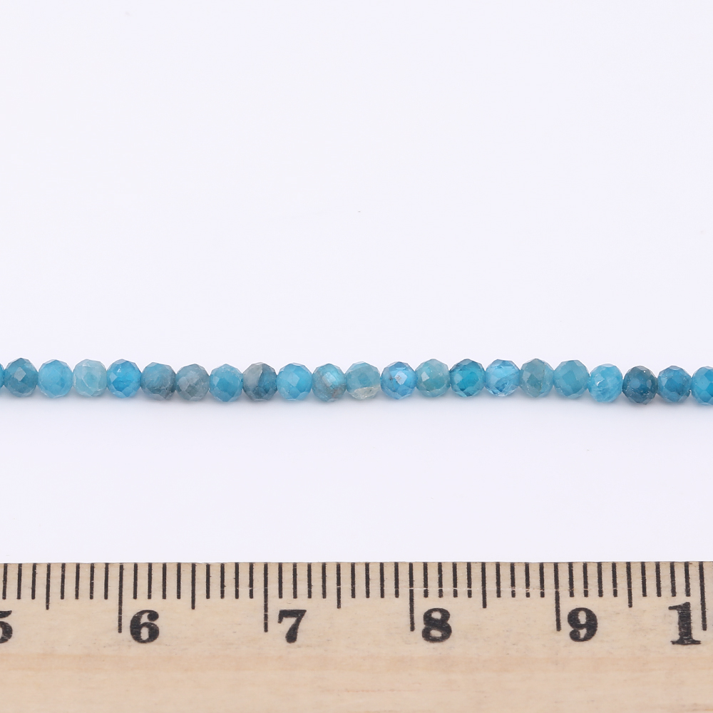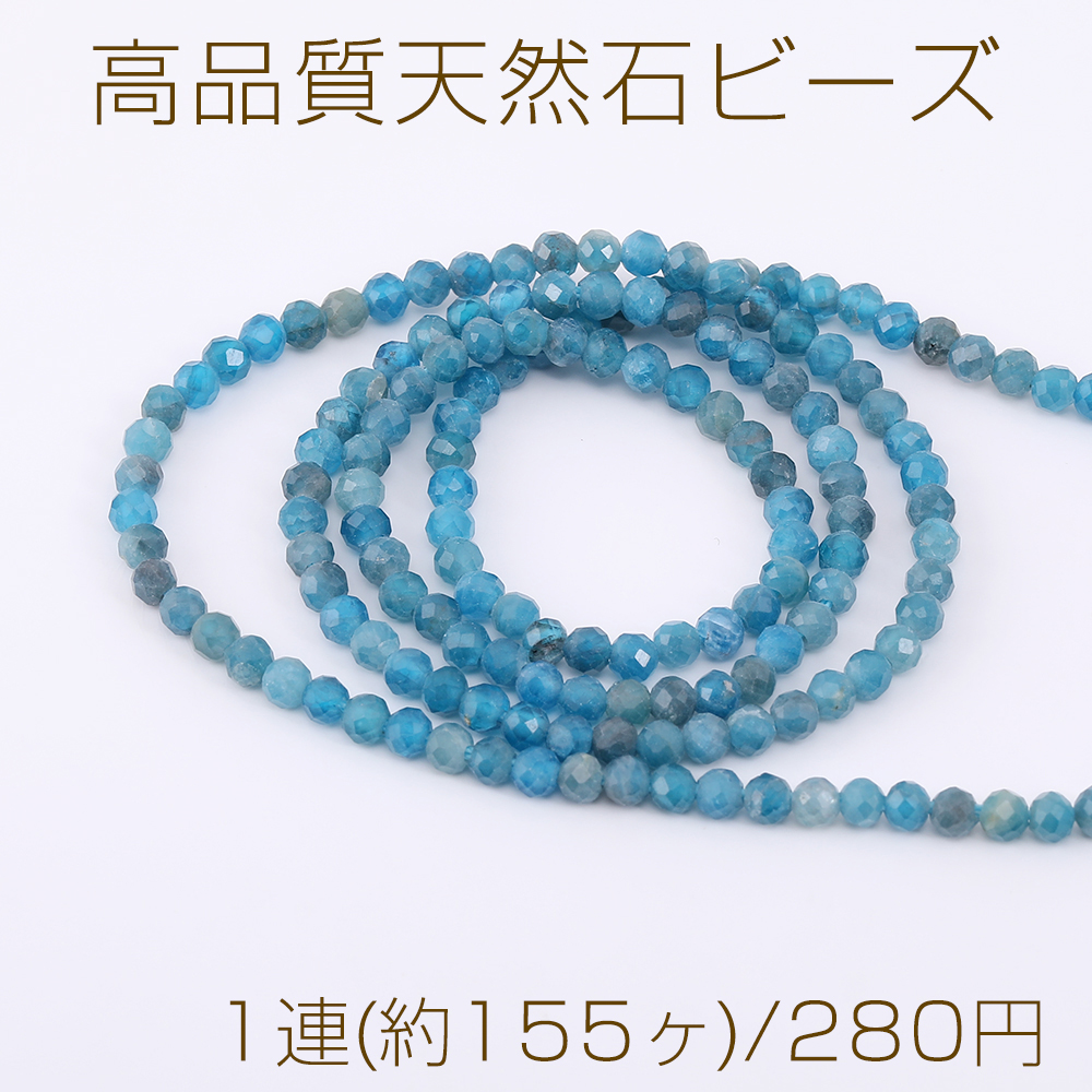 高品質天然石ビーズ ブルーアパタイト ラウンドカット 3mm 1連(約155ヶ)