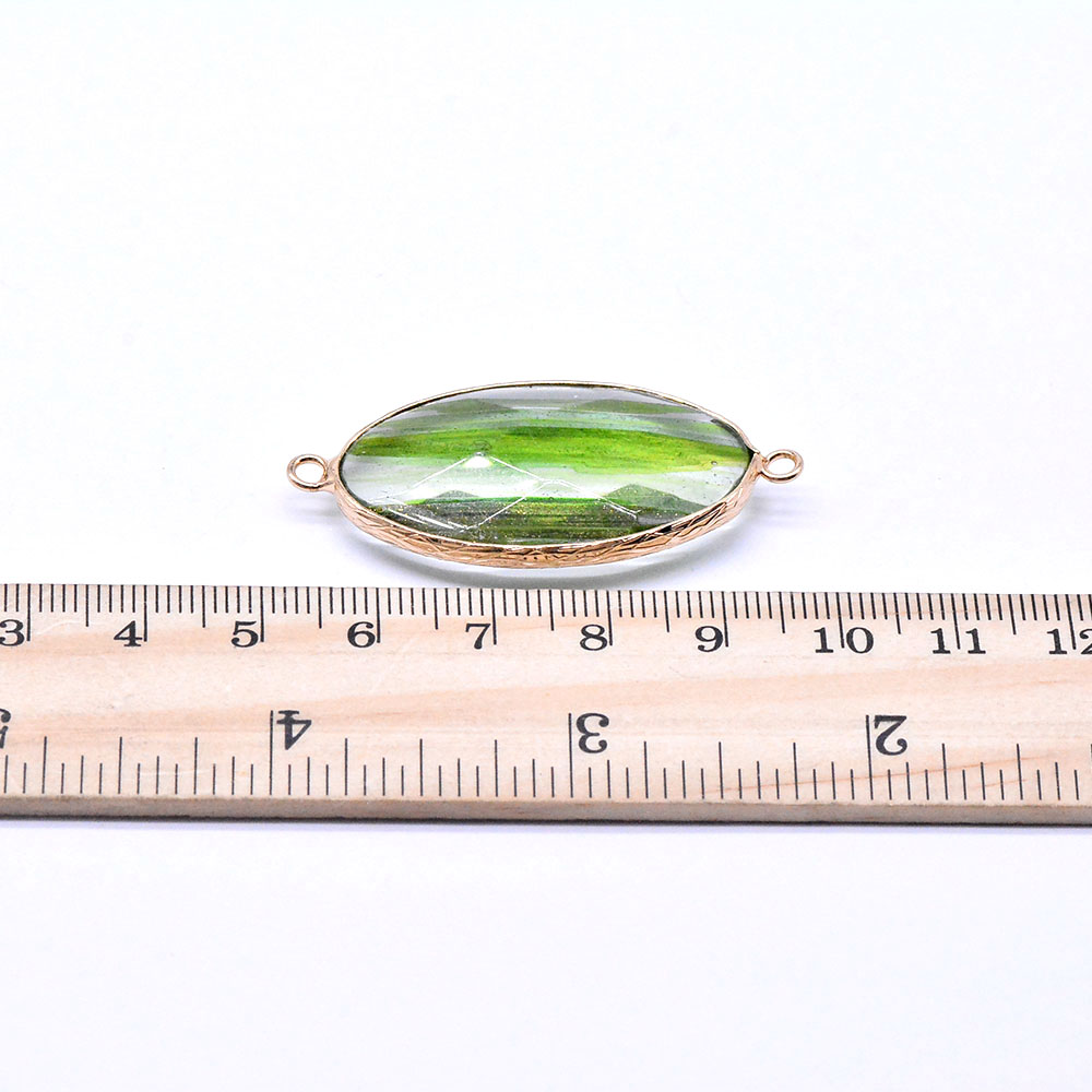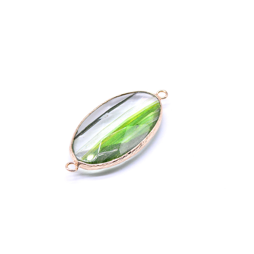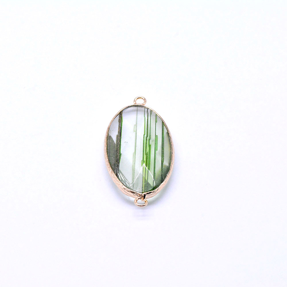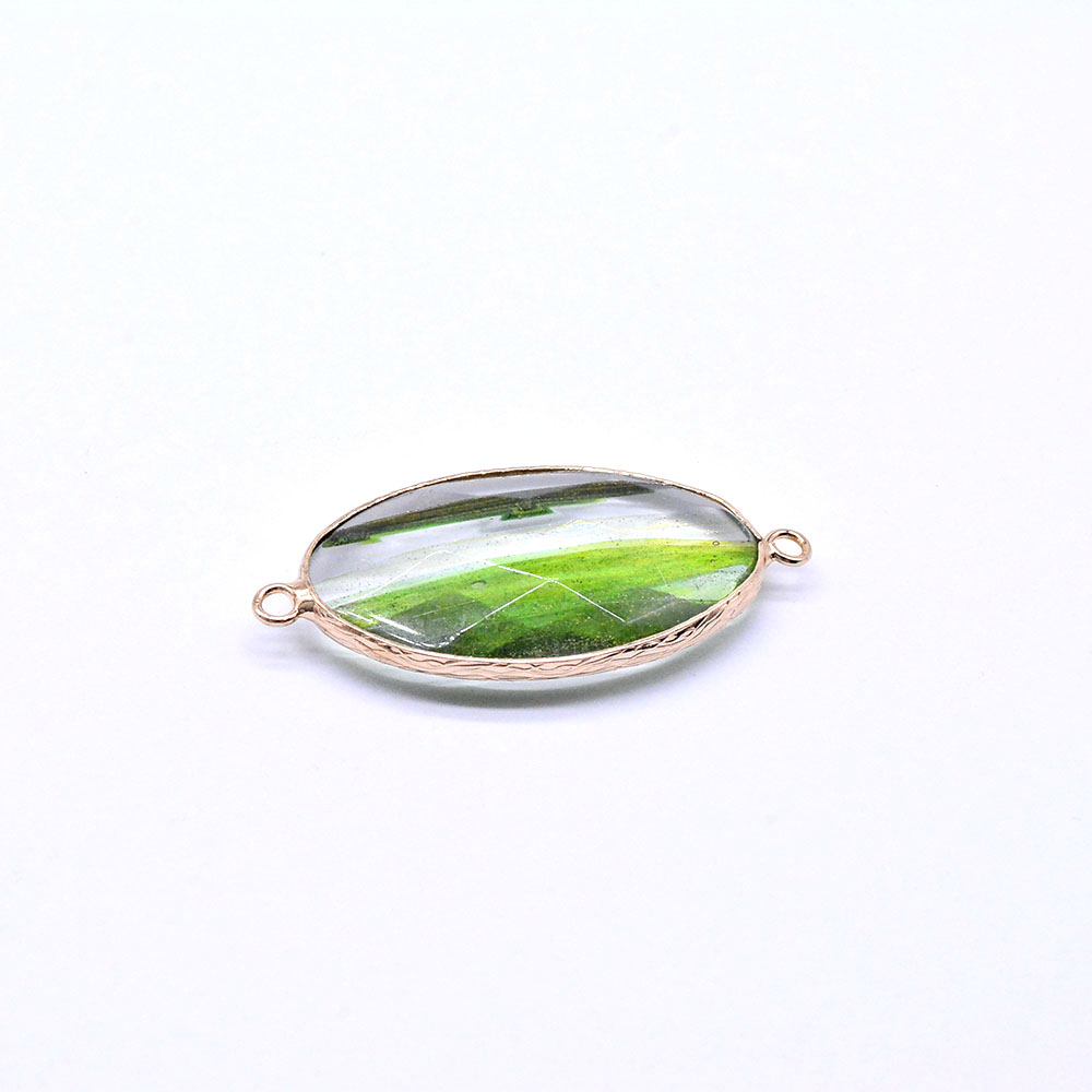 天然石コネクターチャーム クォーツ 2カン付き 多カット 楕円形 ゴールド (1ヶ)