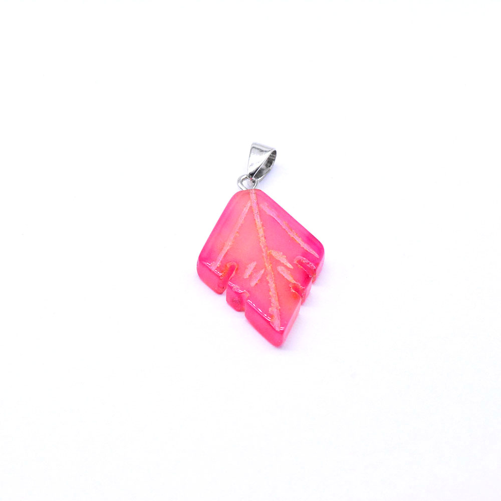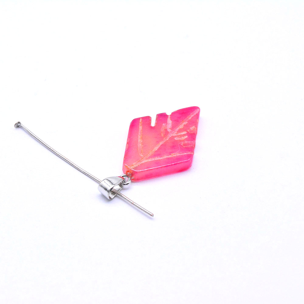 天然石チャーム 葉型 ローズピンク/ロジウム (1ヶ)
