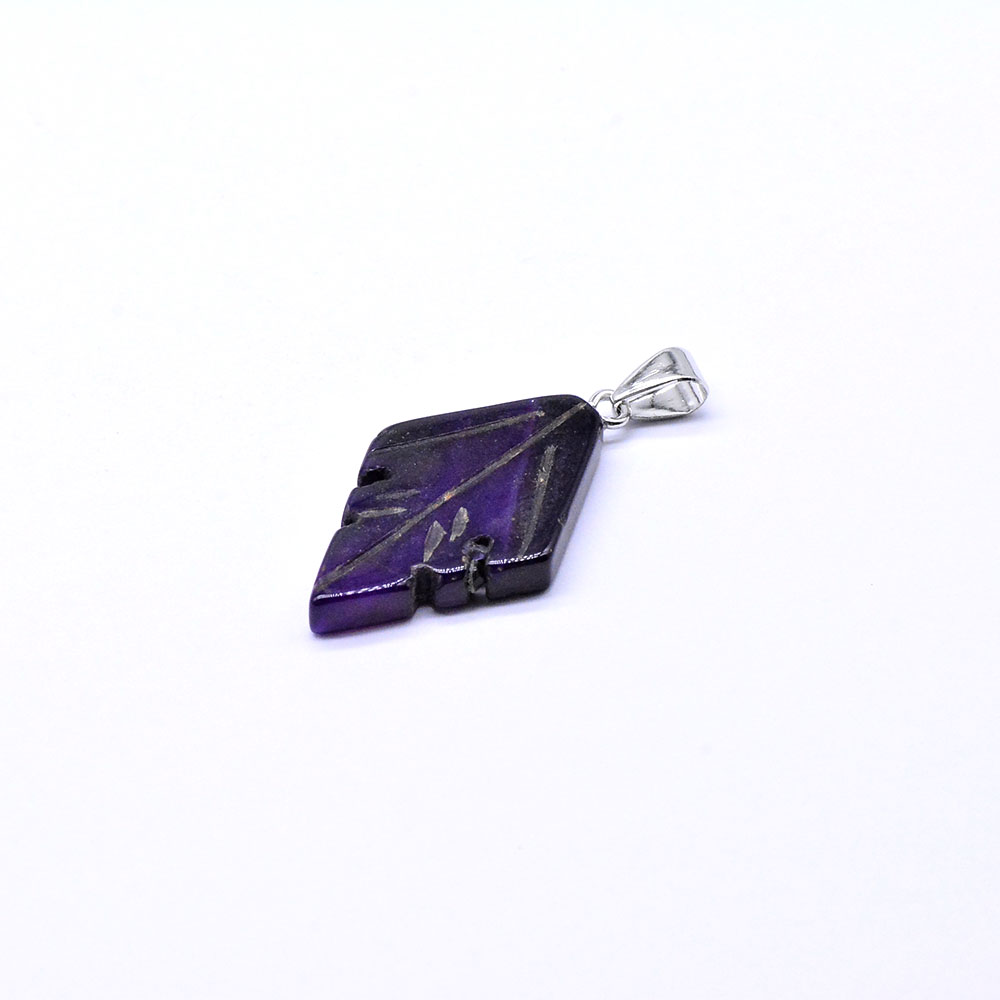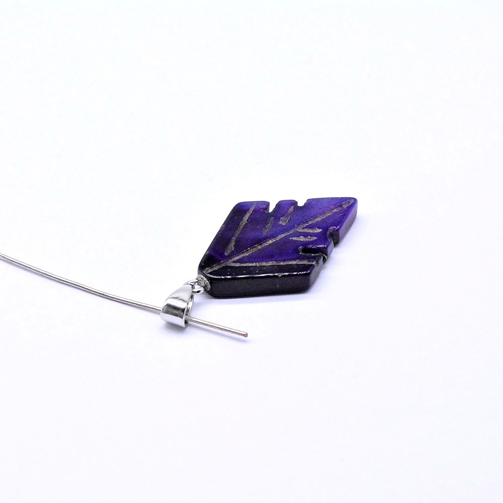 天然石チャーム 葉型 パープル/ロジウム (1ヶ)