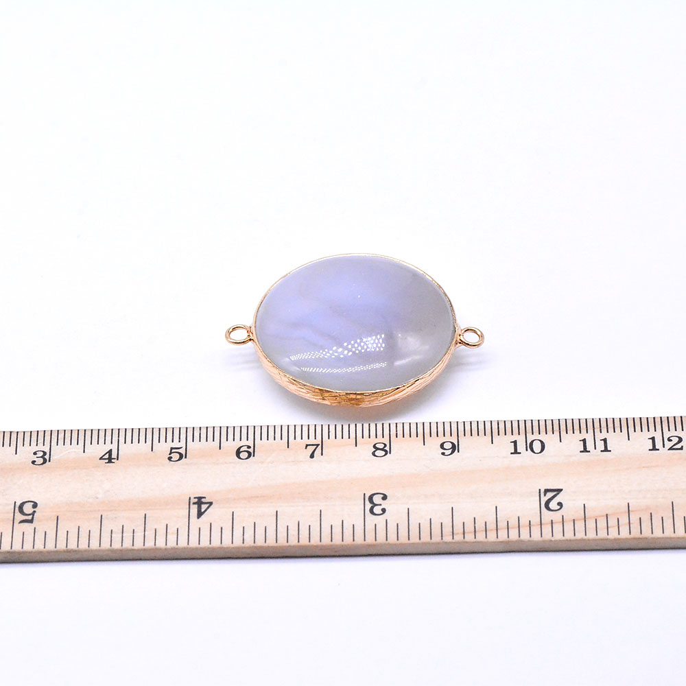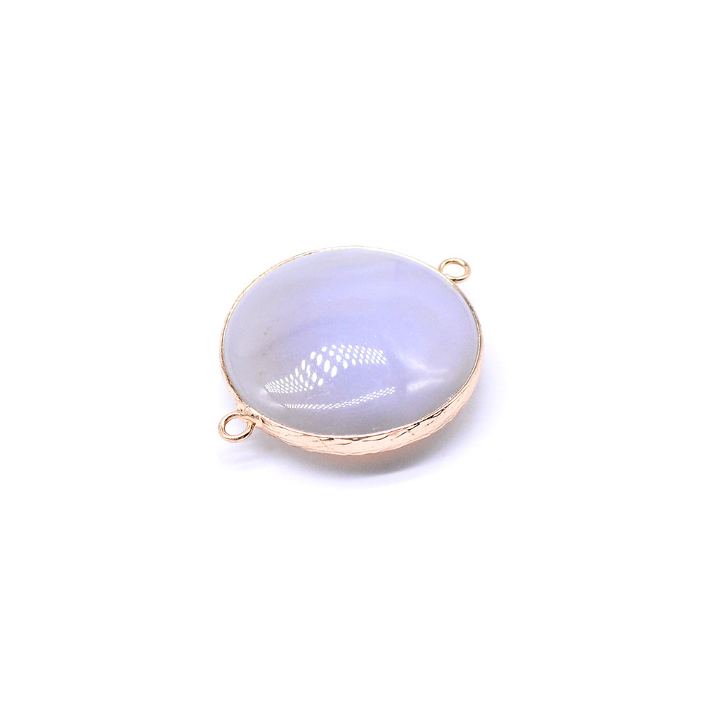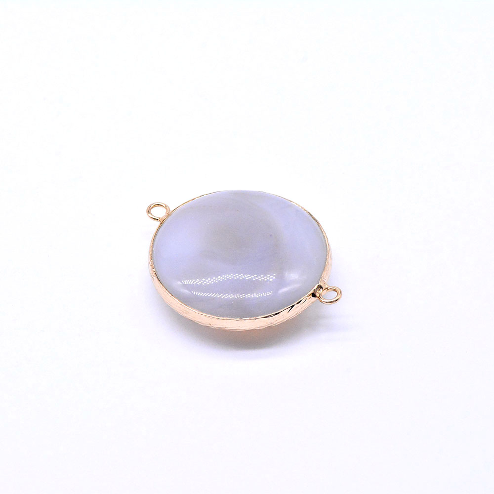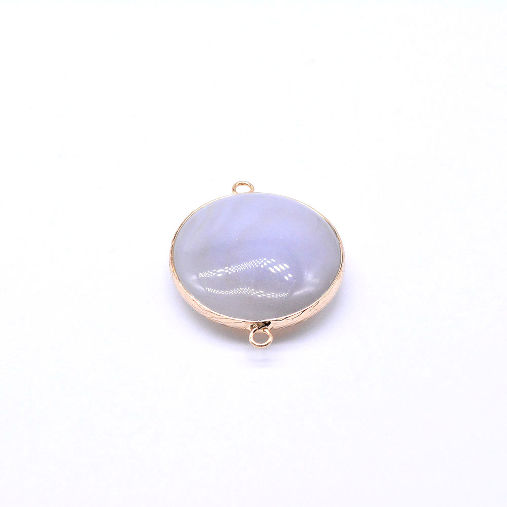 天然石チャーム 枠付き 円型 2カン付き ライトパープル/ゴールド(1ヶ)