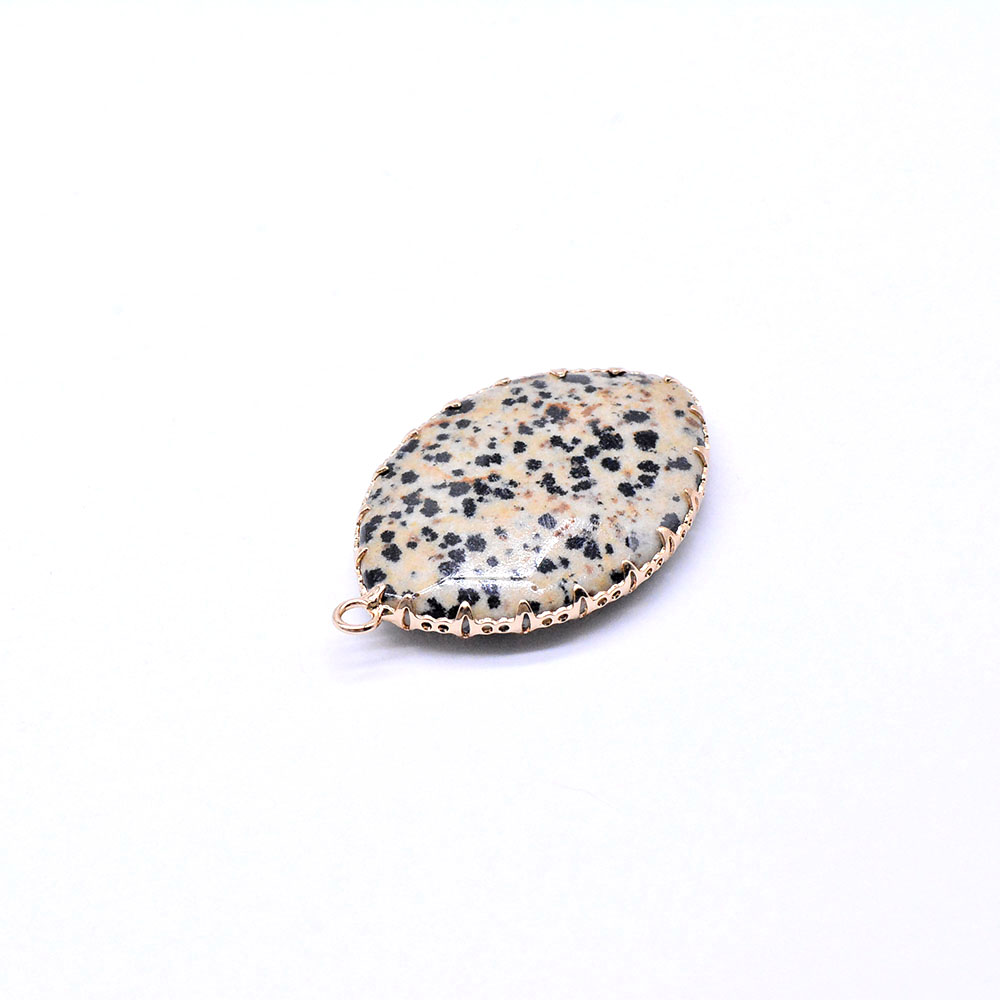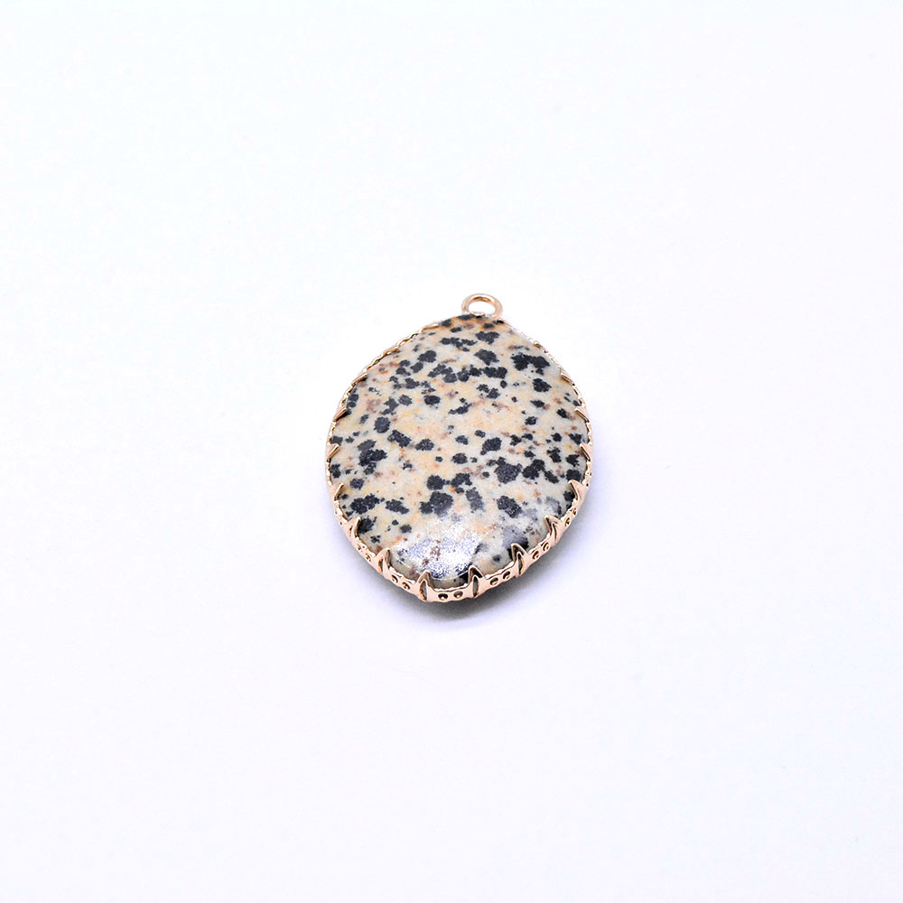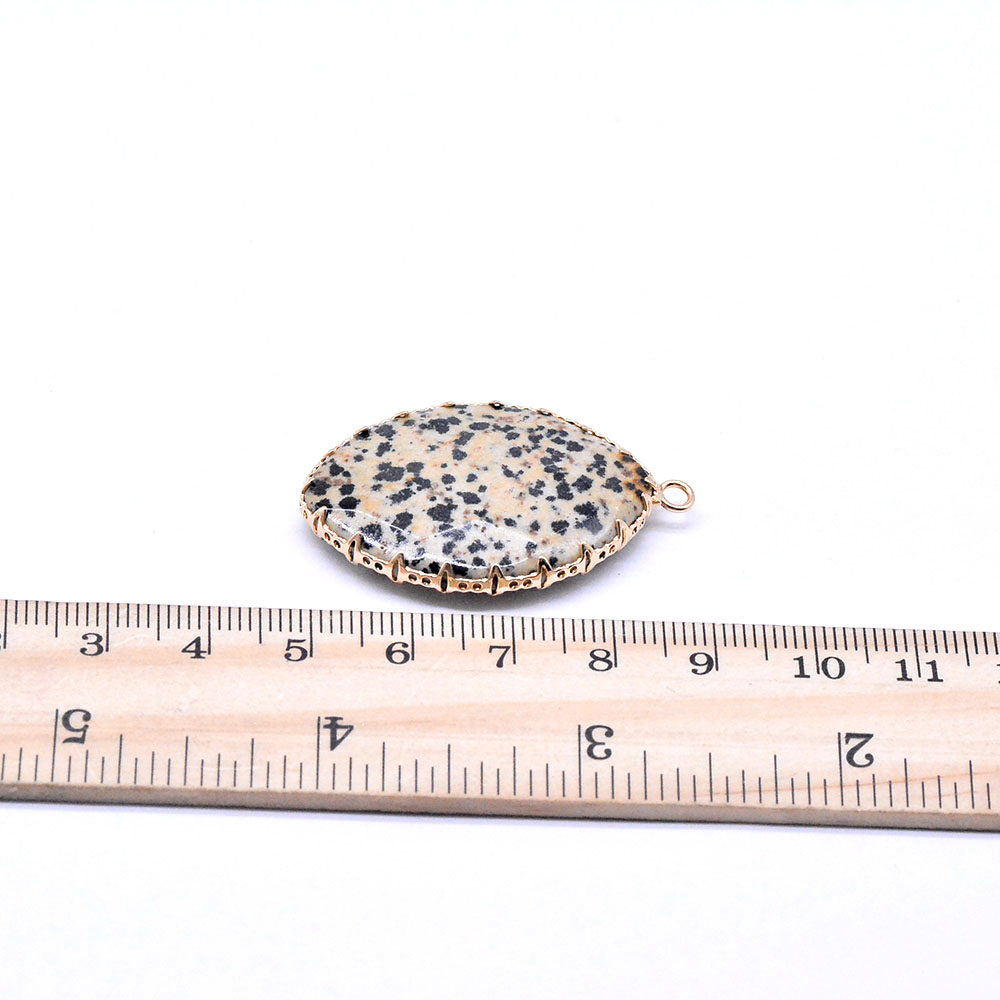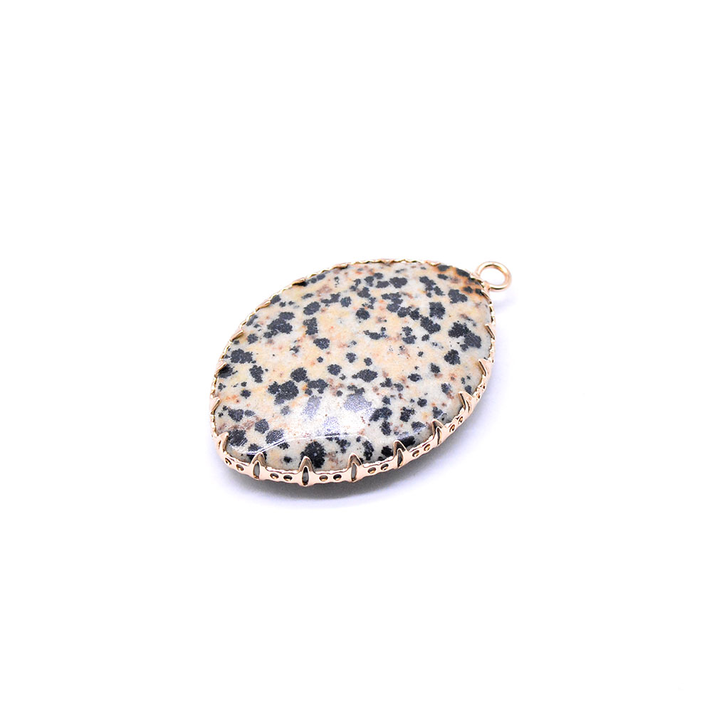 天然石チャーム ダルメシアン 枠付き 楕円形カット ゴールド (1ヶ)
