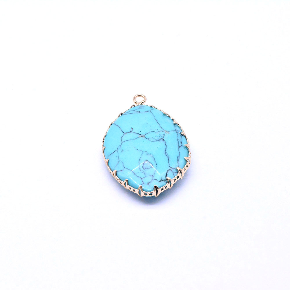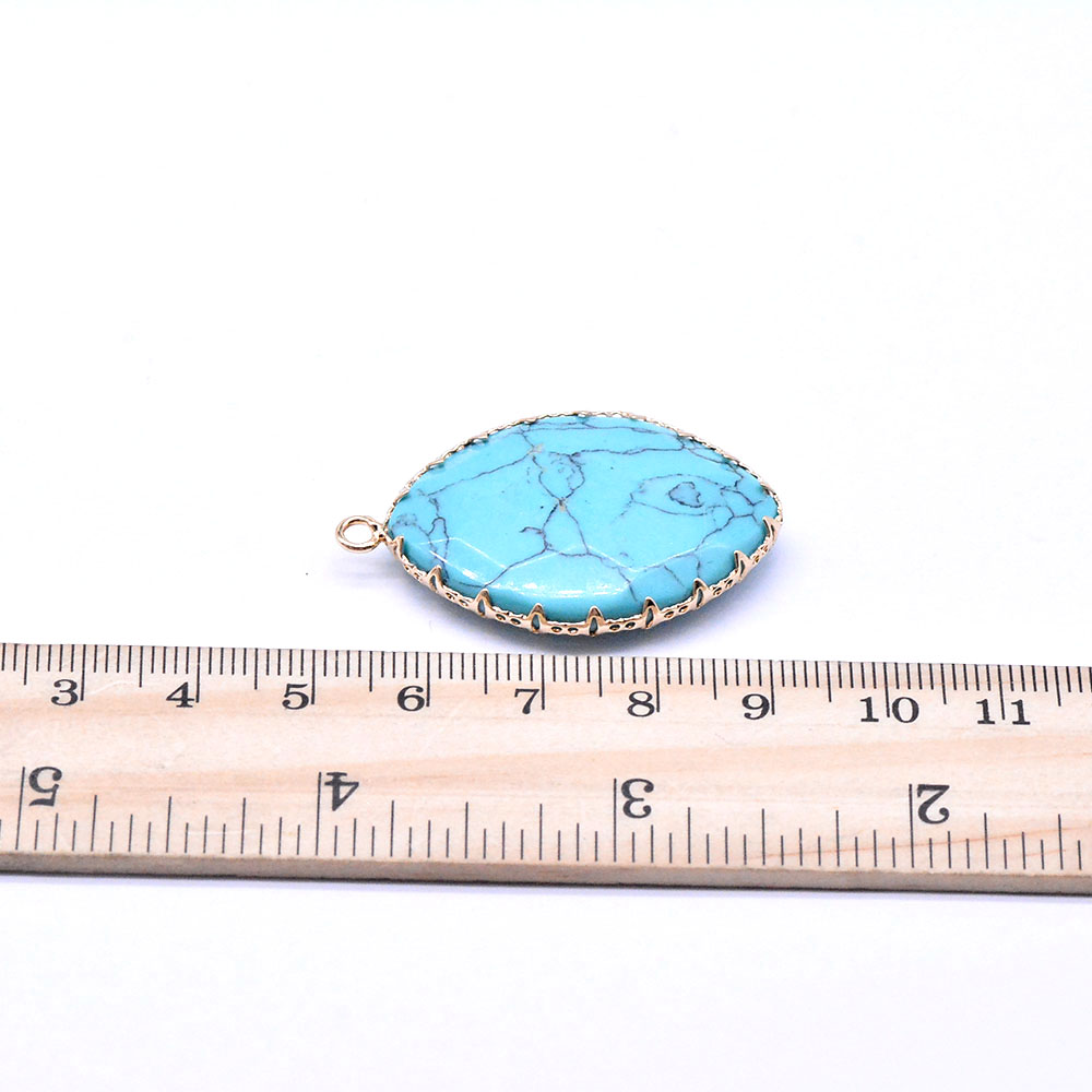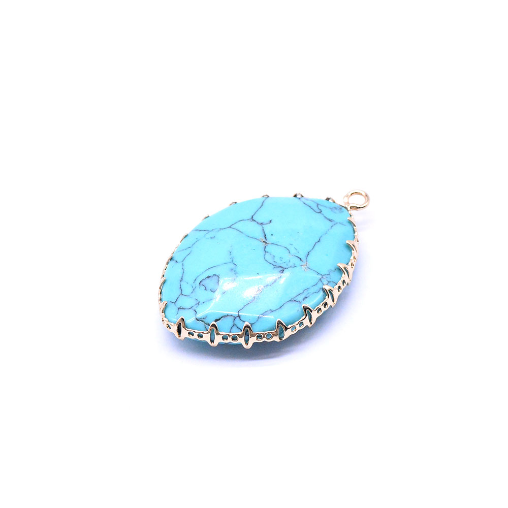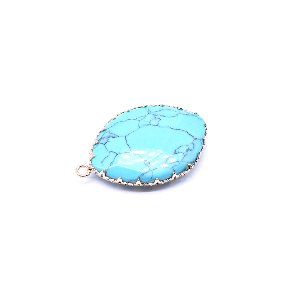 天然石チャーム ターコイズ 枠付き 楕円形カット ゴールド (1ヶ)