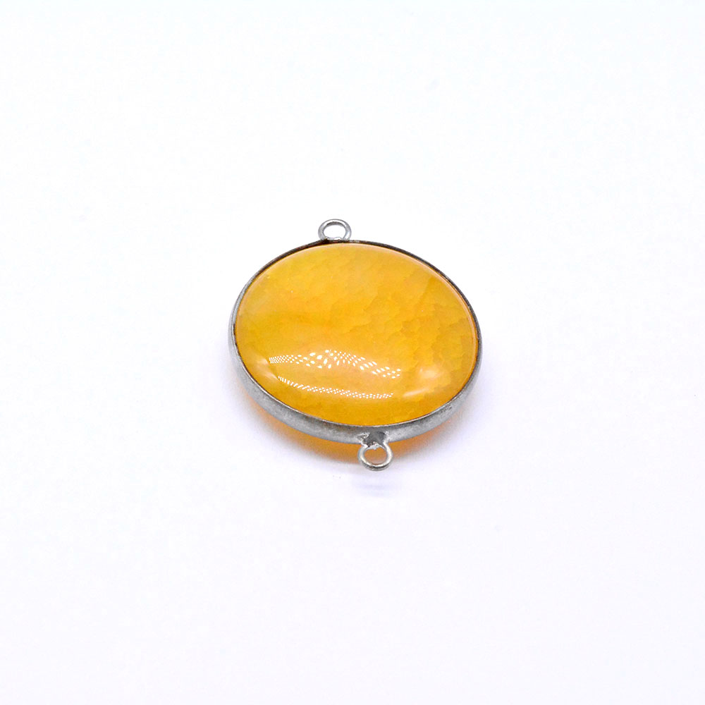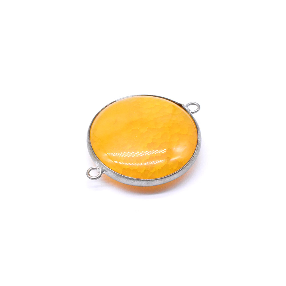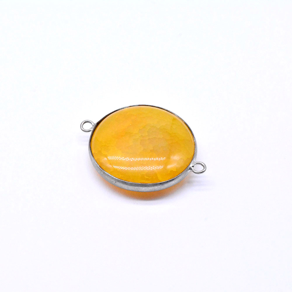 天然石ビーズ メノウ 枠付き 2カン付き ロジウム (1ヶ)