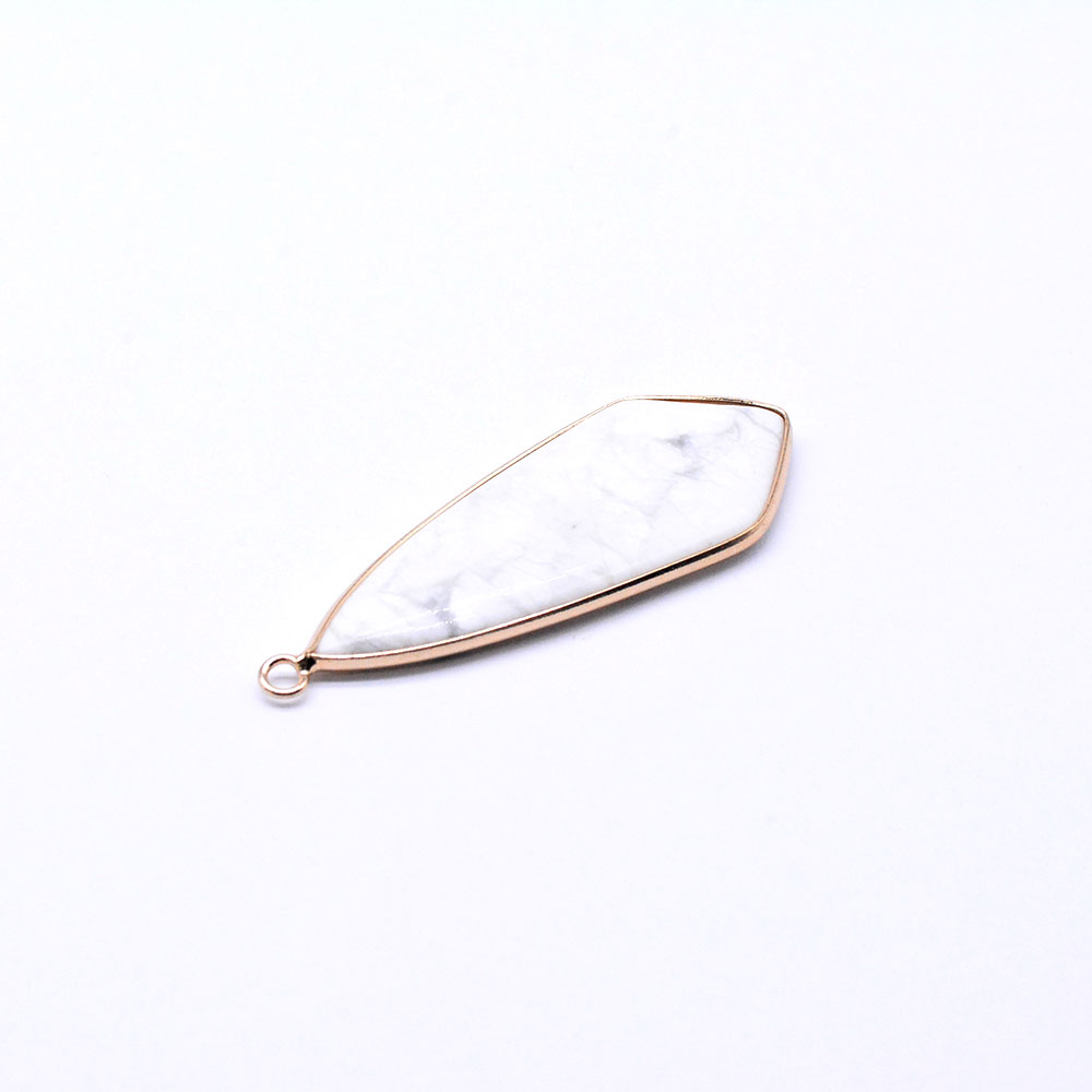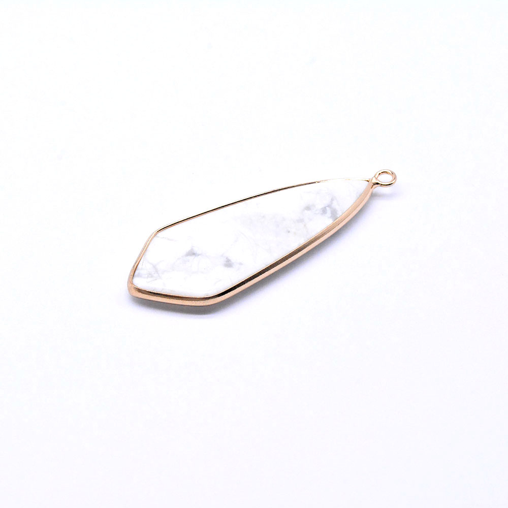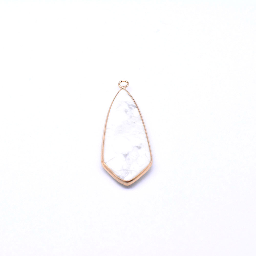 天然石チャーム ハウライト 枠付き 2カン付き しずく型 ゴールド (1ヶ)