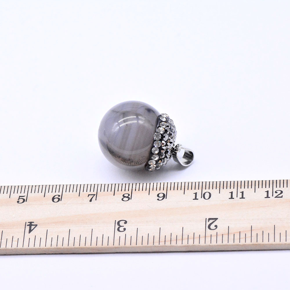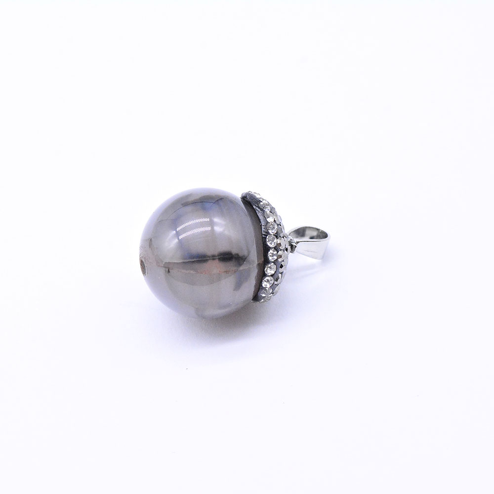 天然石チャーム メノウ ペンダント 丸型 石付き ロジウム(1ヶ)