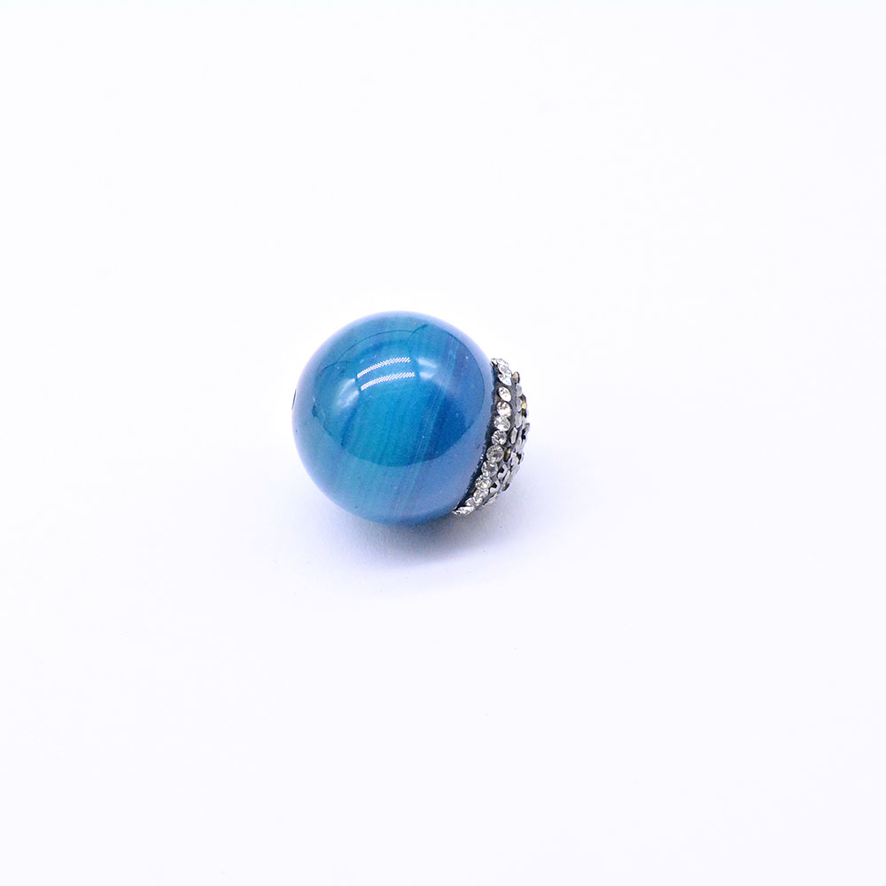 天然石ビーズ メノウ ペンダント 丸型 石付き ロジウム(1ヶ)