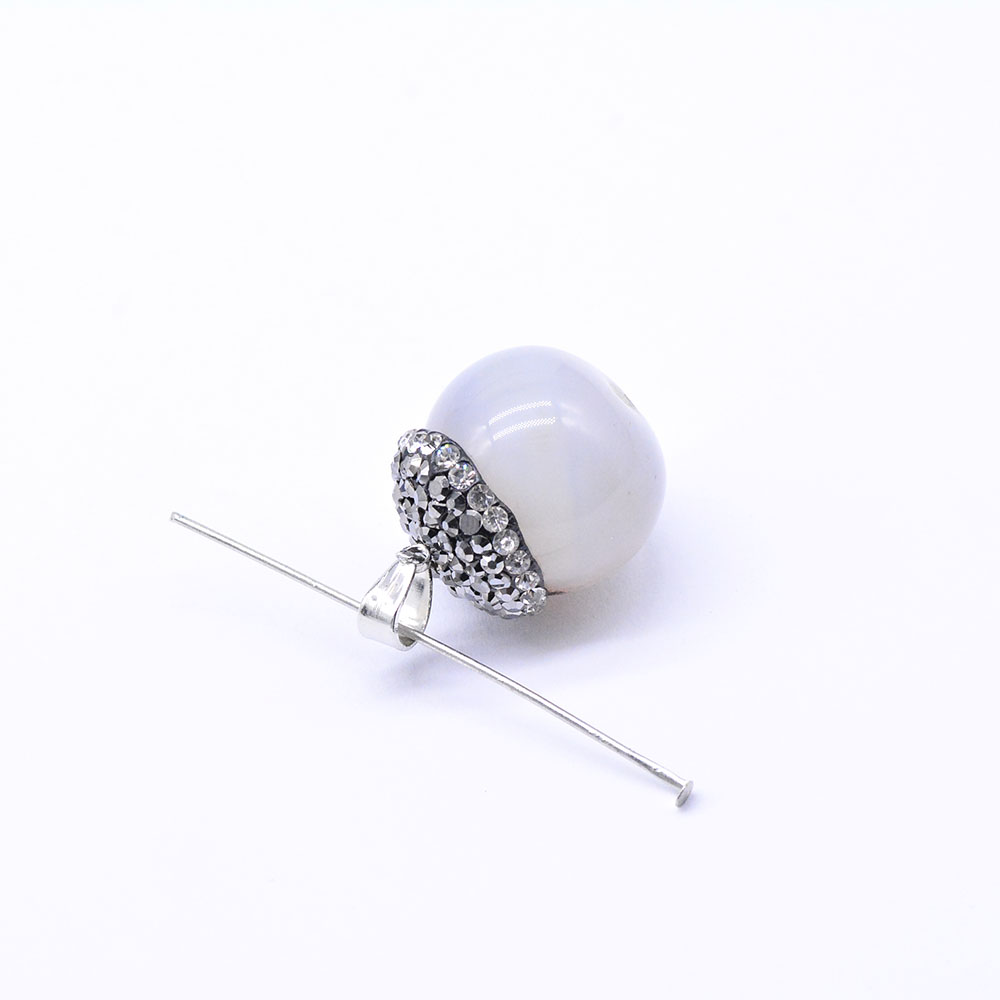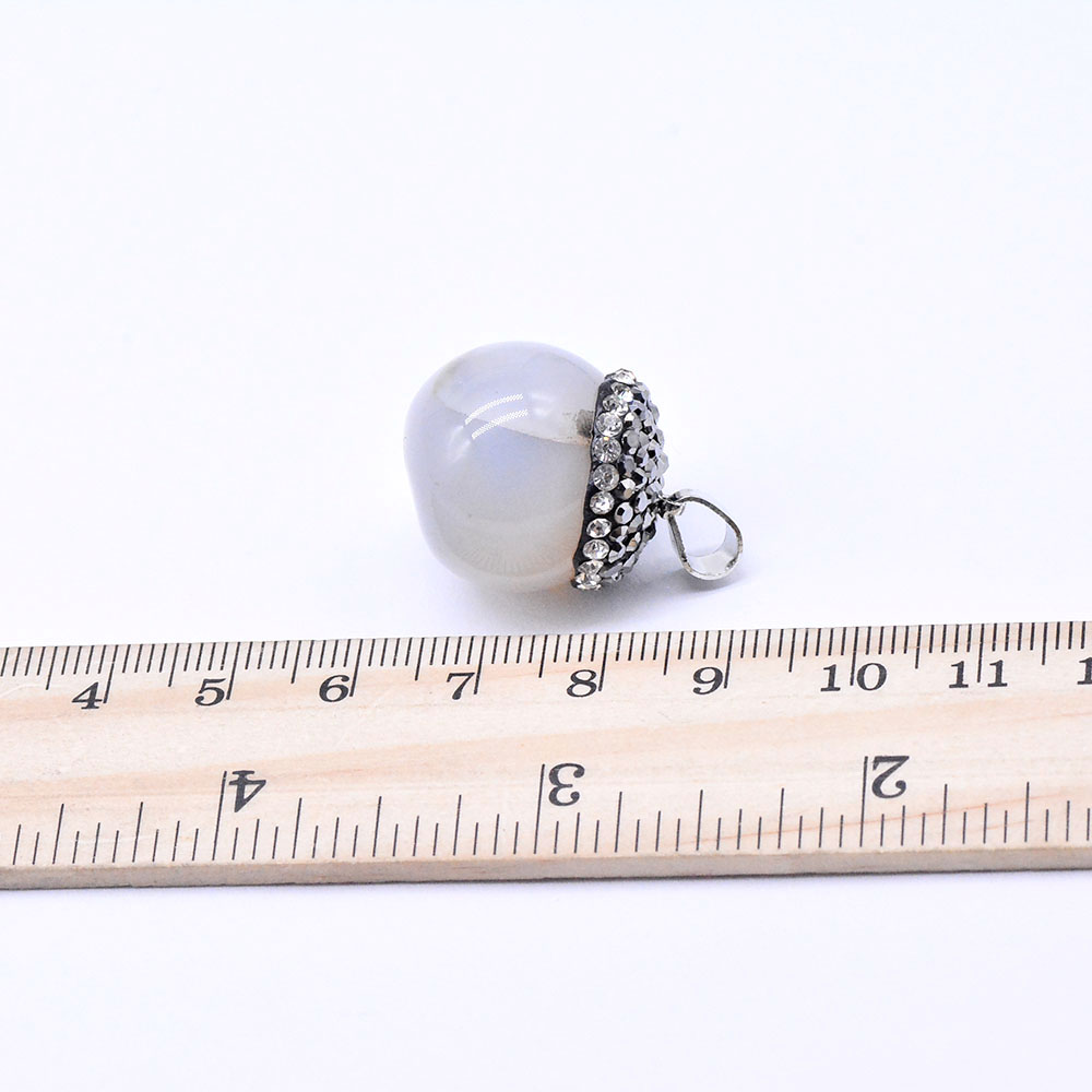 天然石チャーム メノウ ペンダント 丸型 石付き ロジウム(1ヶ)