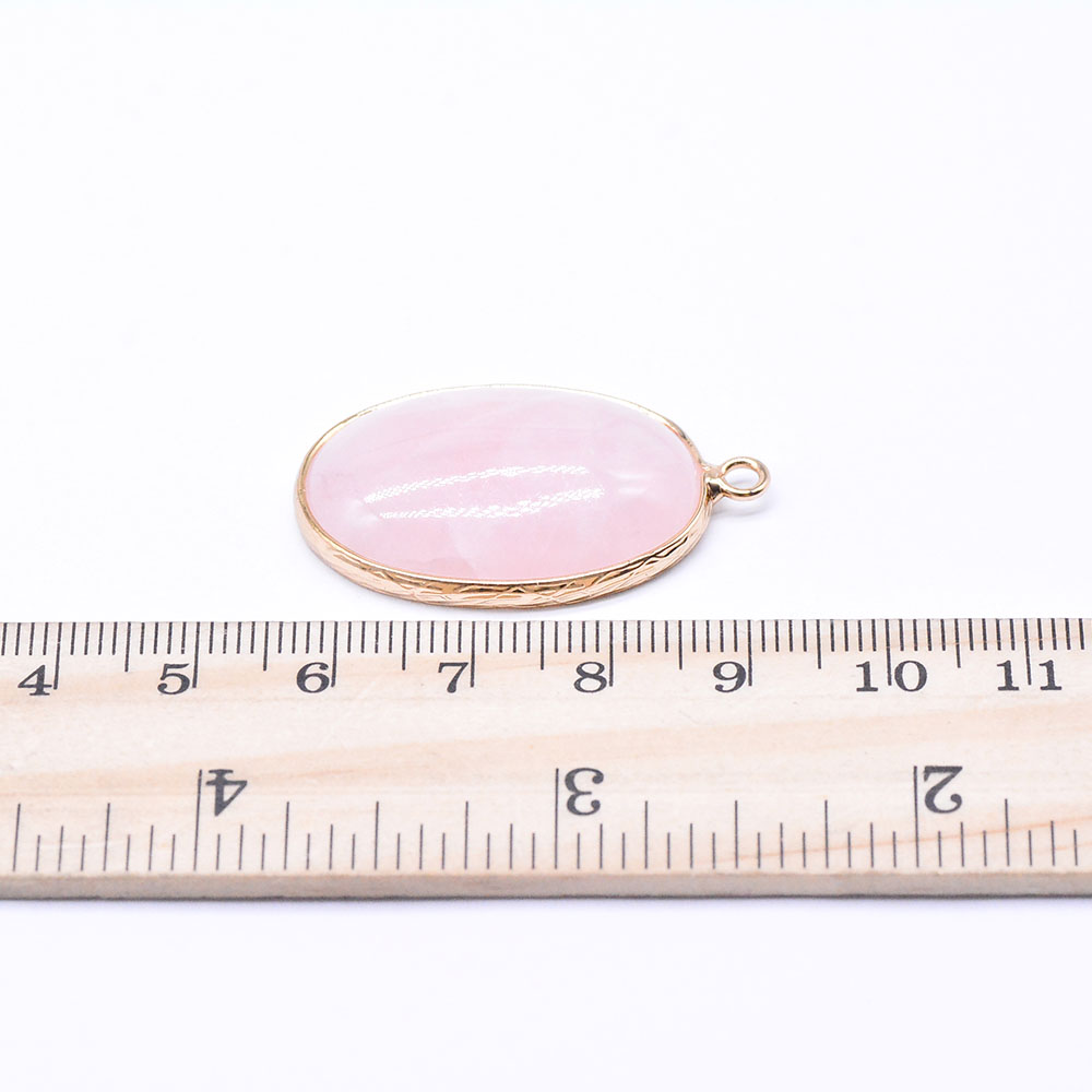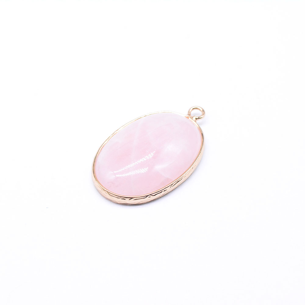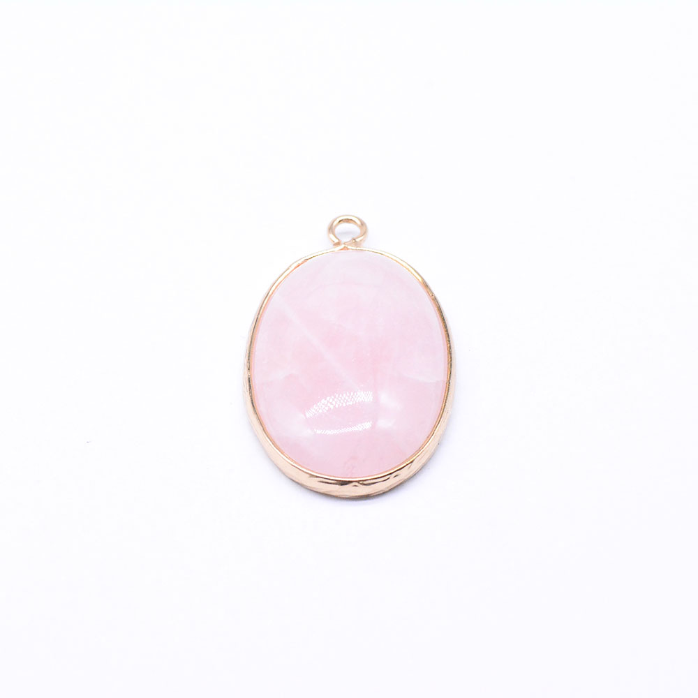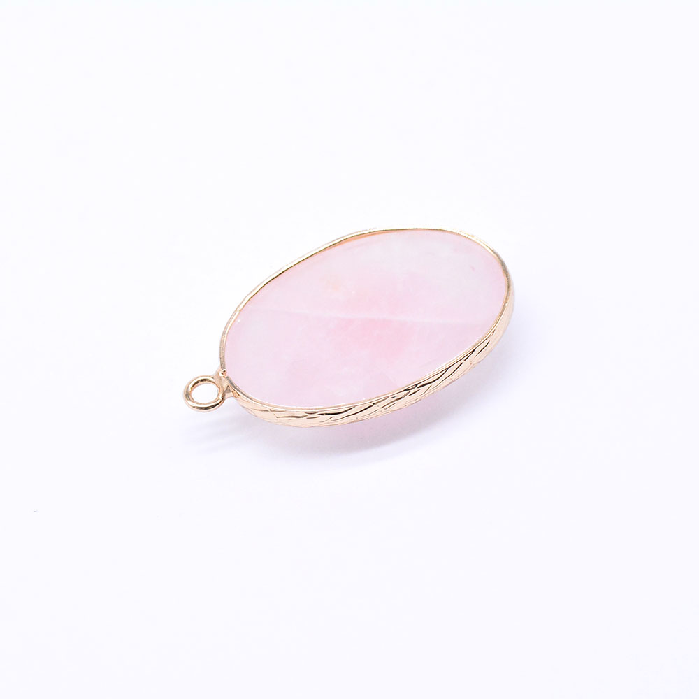天然石チャーム ローズクォーツ 枠付き 楕円形 ペンダント ゴールド(1ヶ)