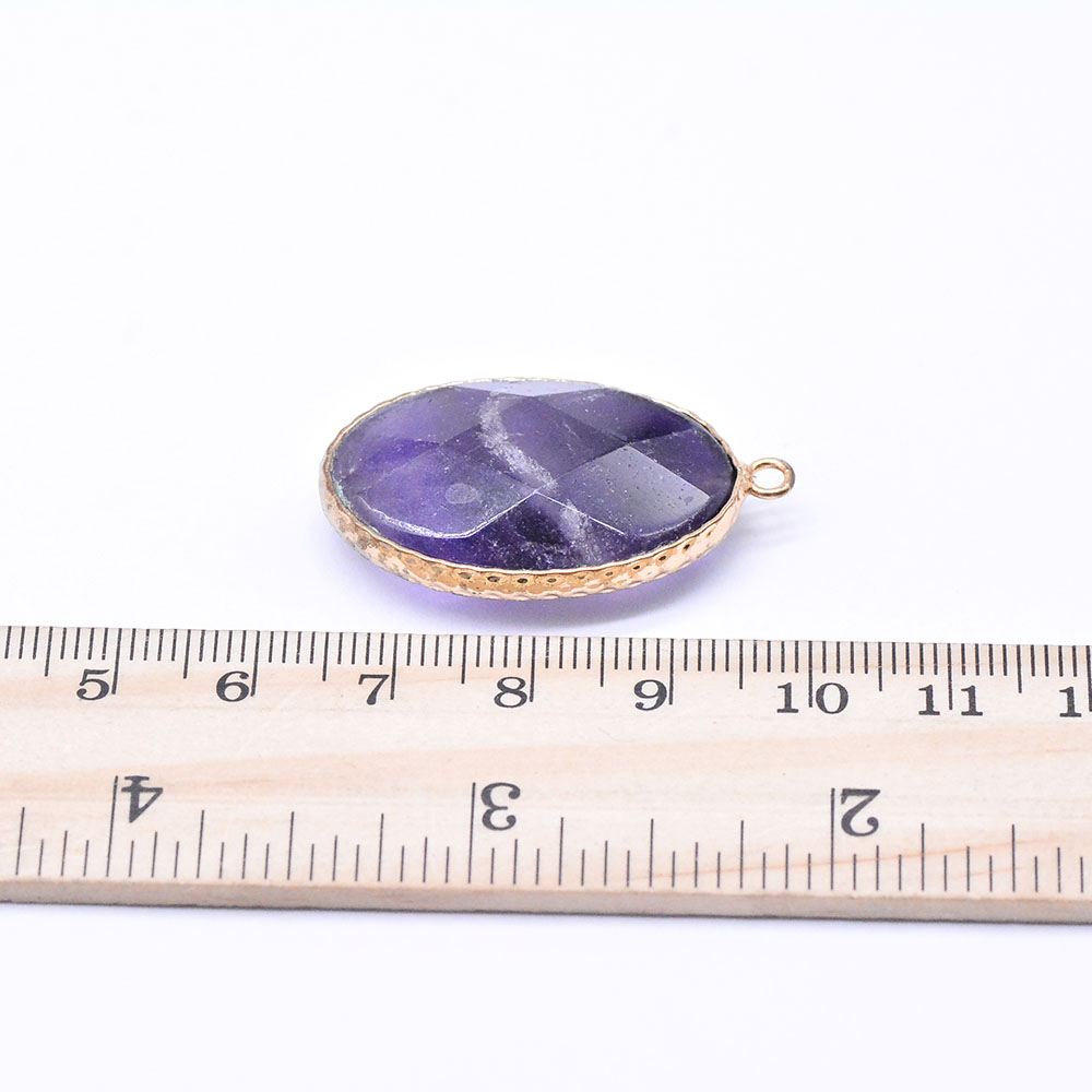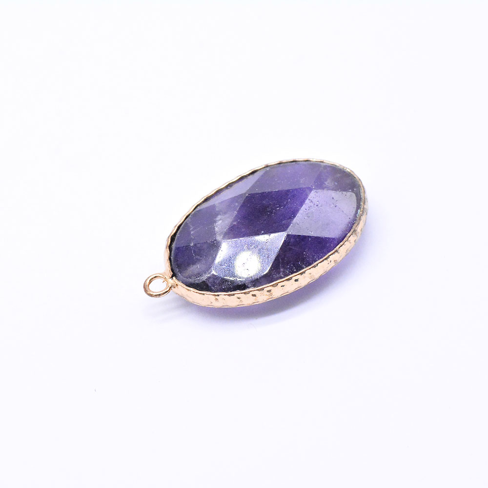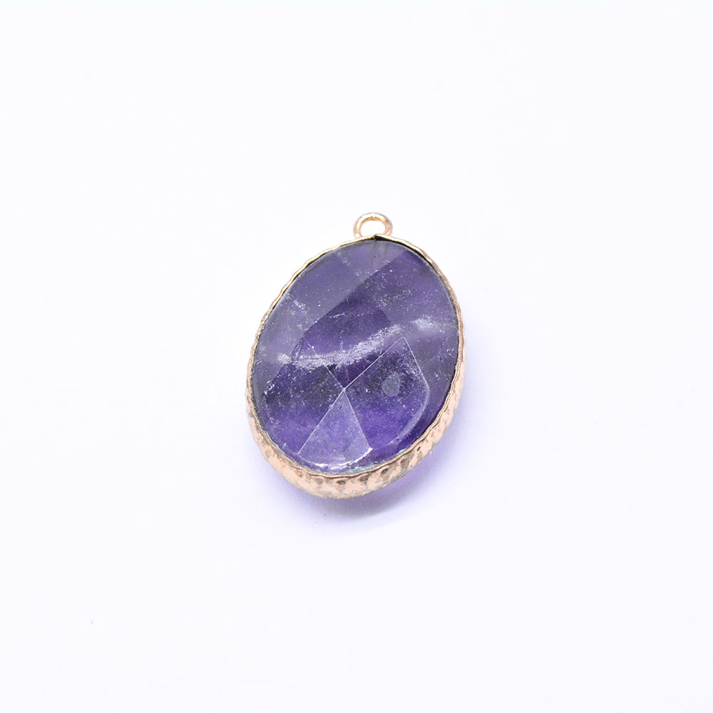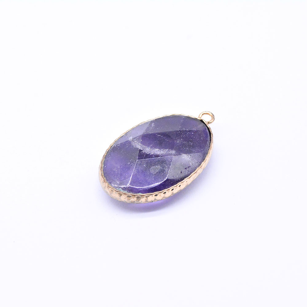 天然石チャーム アメジスト 枠付き 楕円形 ペンダント ゴールド(1ヶ)