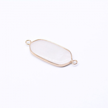 天然石コネクターチャーム ローズクォーツ 楕円形 枠付き 2カン ゴールド(1ヶ)