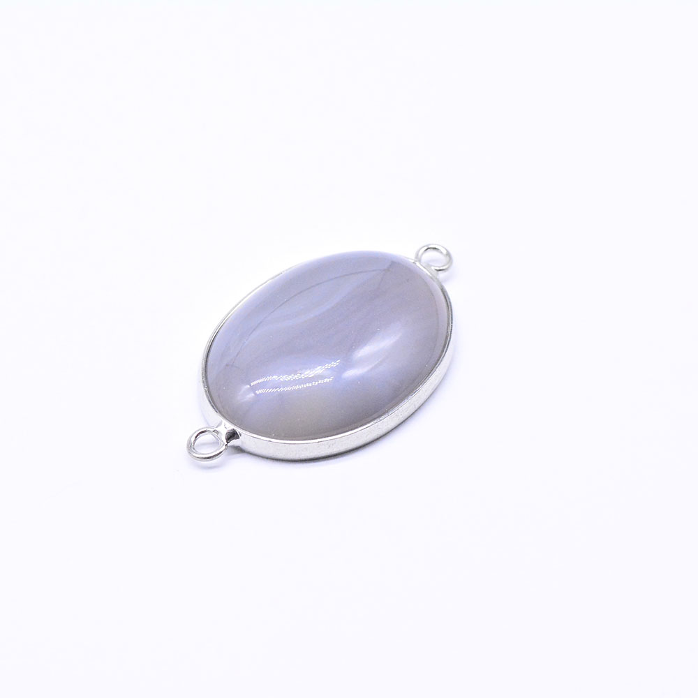 天然石コネクターチャーム メノウ 楕円形 枠付き 2カン ゴールド(1ヶ)