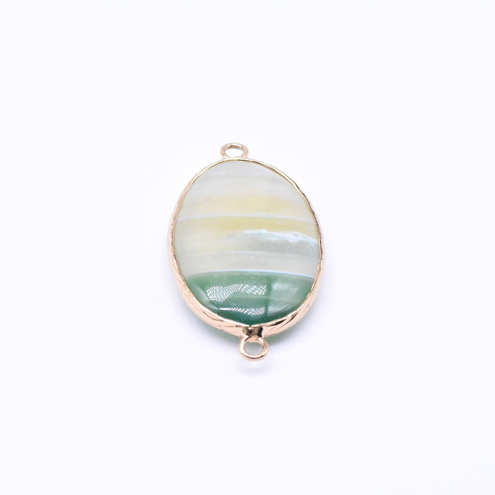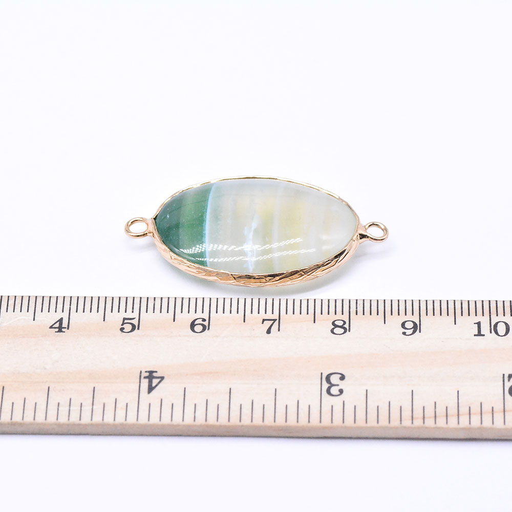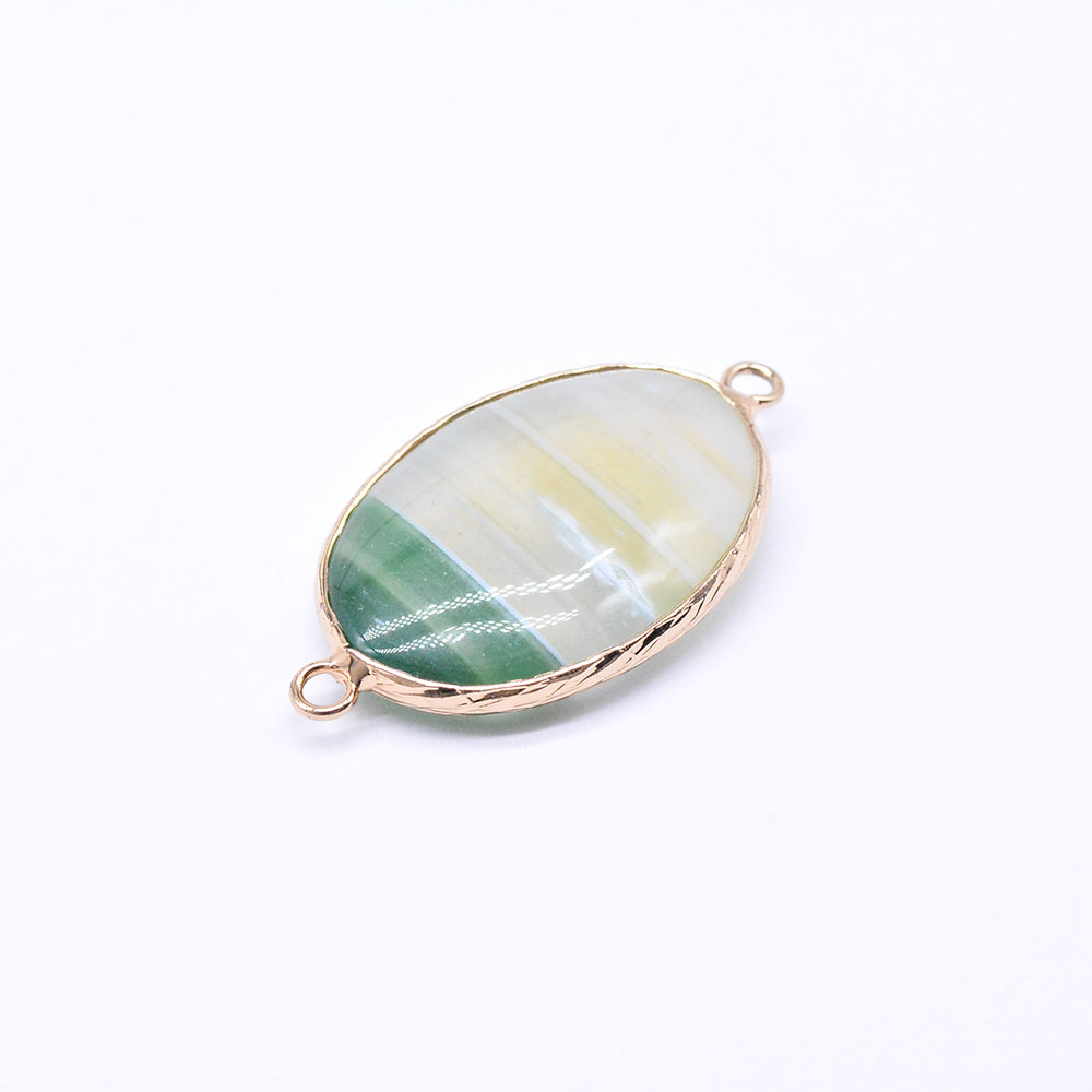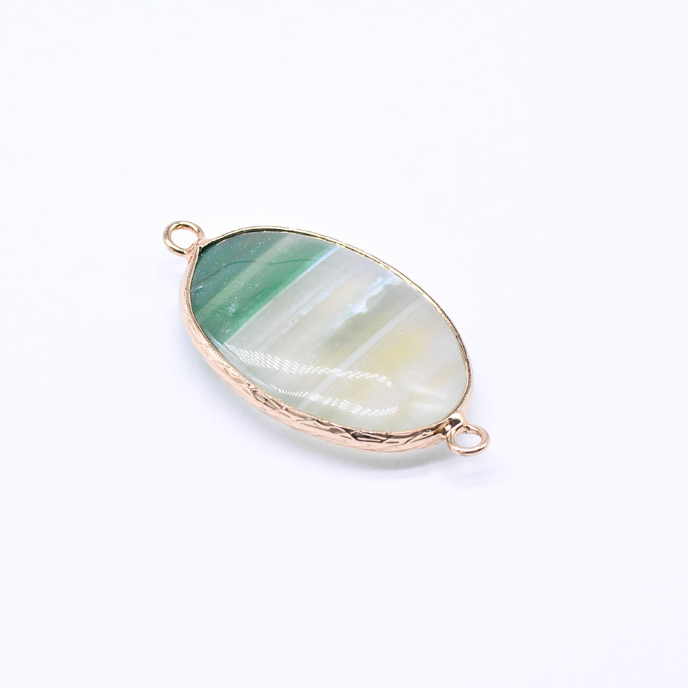 天然石コネクターチャーム メノウ 楕円形 枠付き 2カン ゴールド(1ヶ)